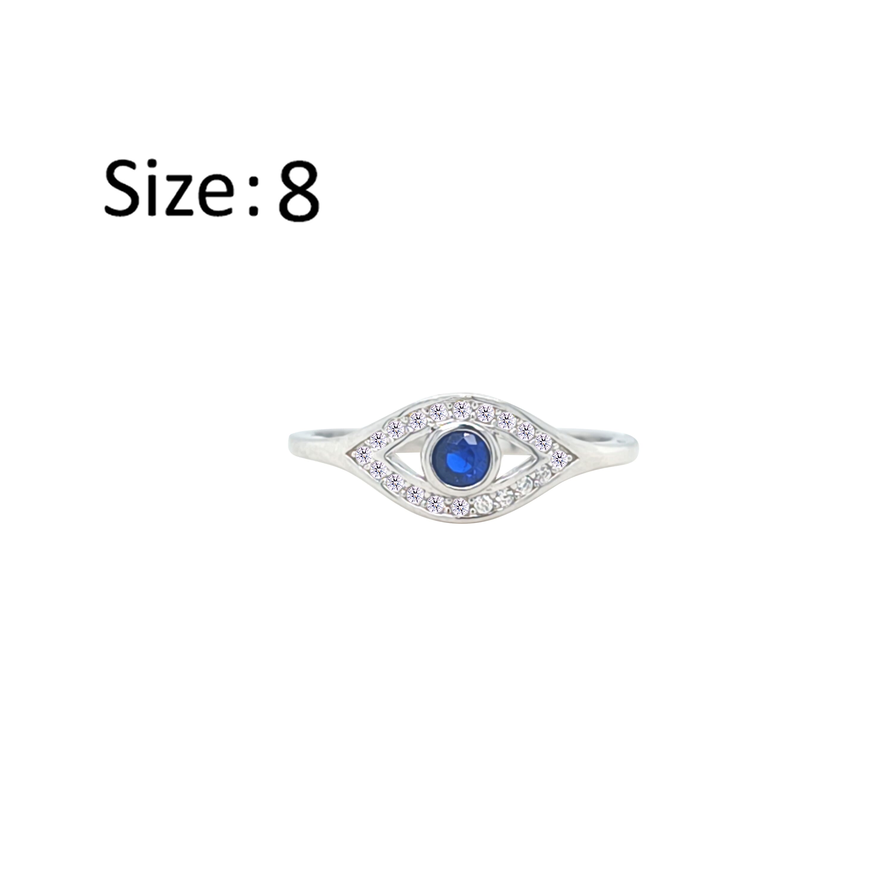 Asfour Crystal Fashion Ring With Blue Evil Eye Design In 925 Sterling Silver-RM0137-WB-8