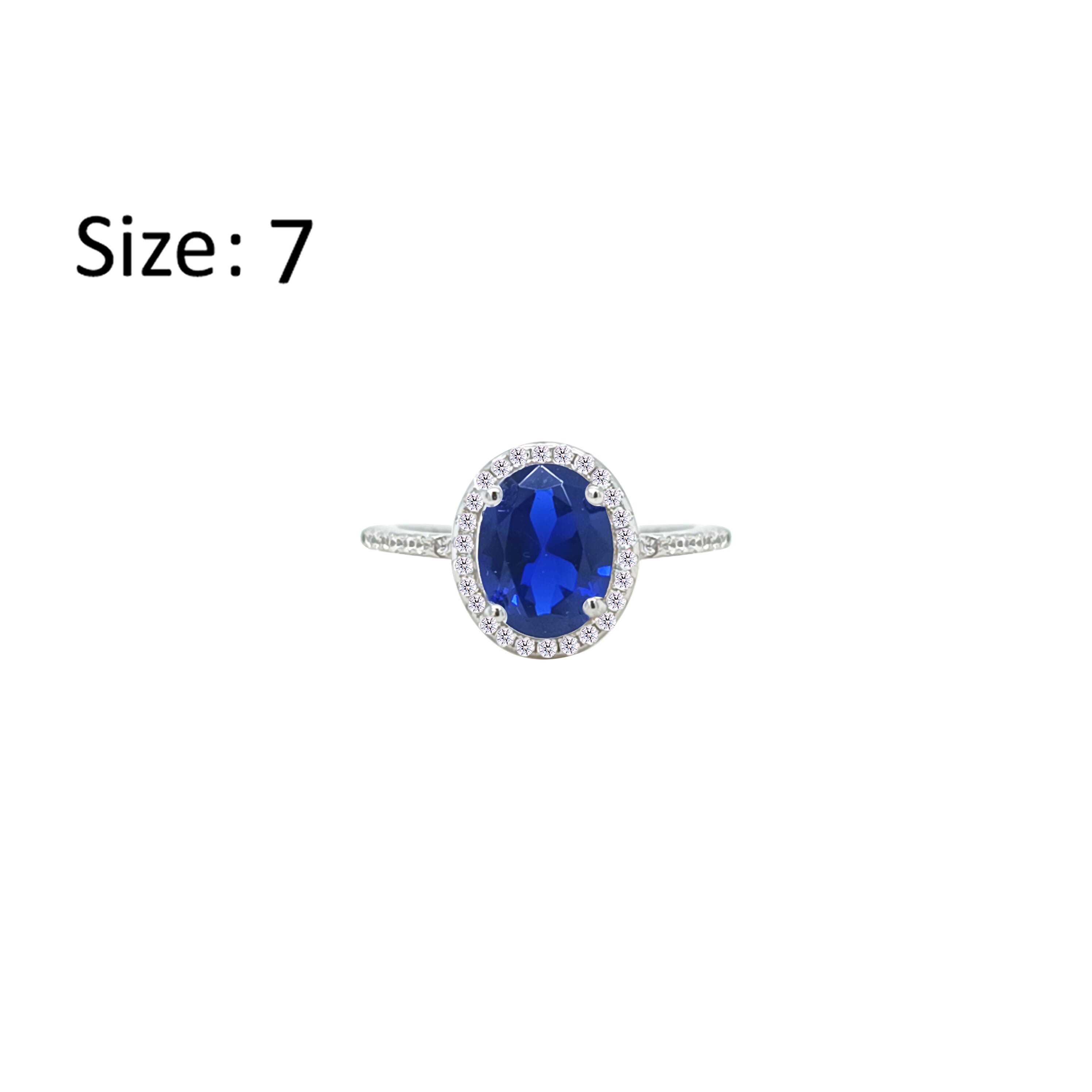 Asfour Crystal Halo Ring With Blue Oval Design In 925 Sterling Silver-RM0158-B-7