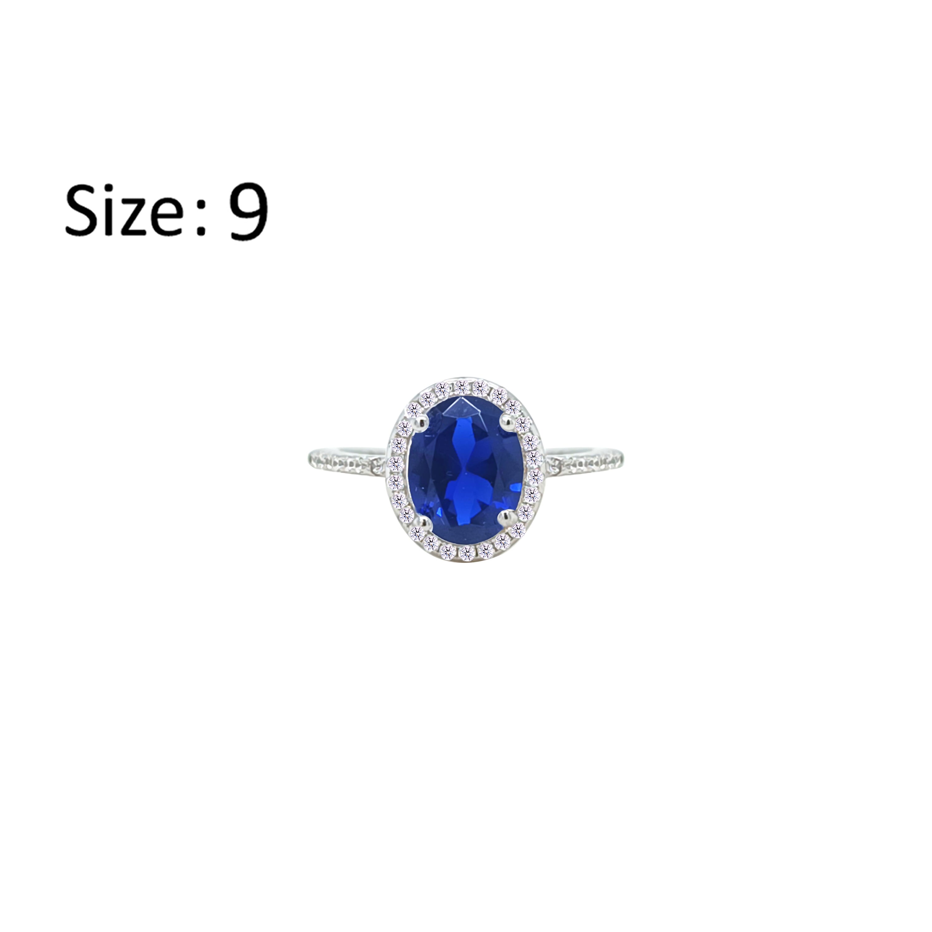 Asfour Crystal Halo Ring With Blue Oval Design In 925 Sterling Silver-RM0158-B-9