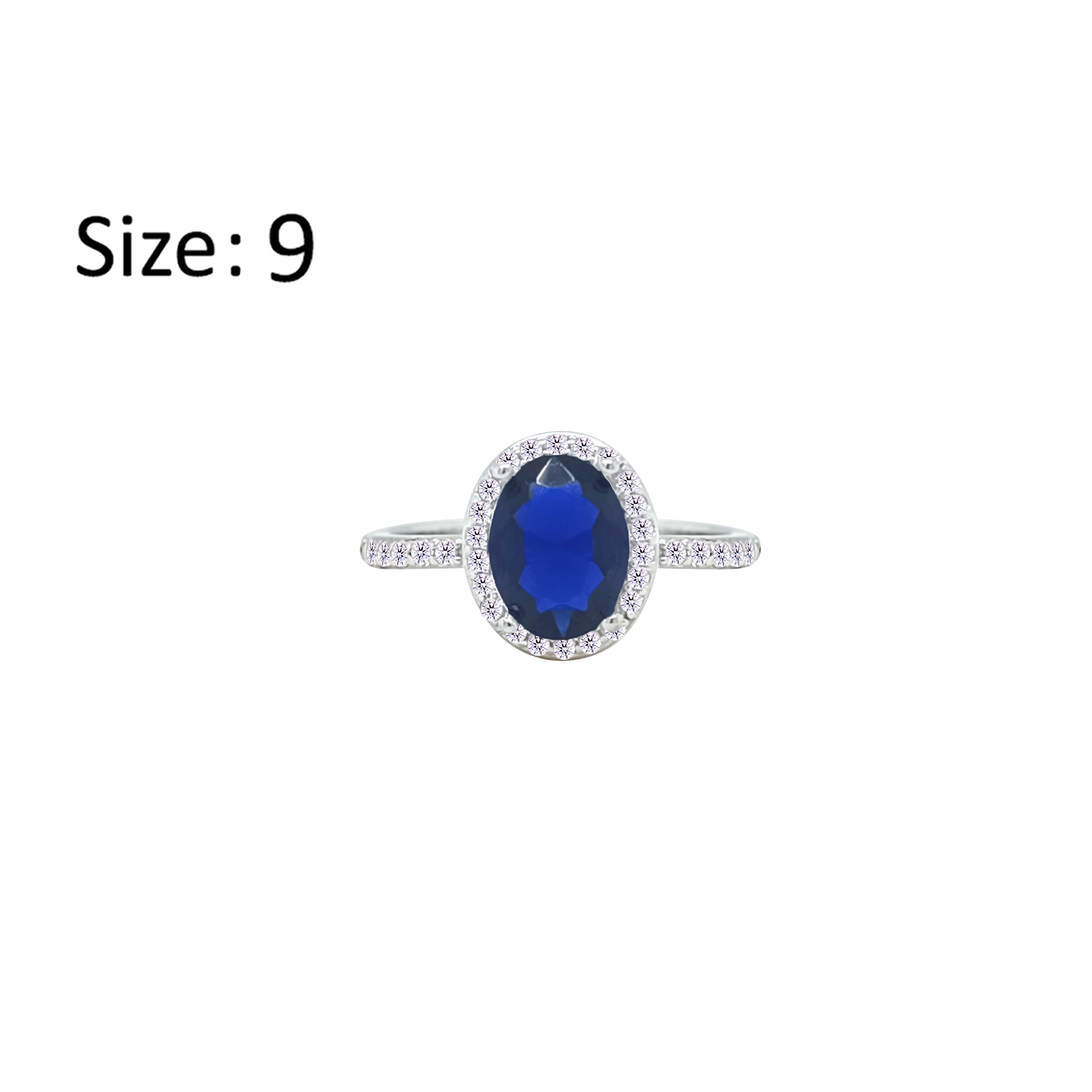 Asfour Crystal Halo Ring With Blue Oval Design In 925 Sterling Silver-RM0161-B-9