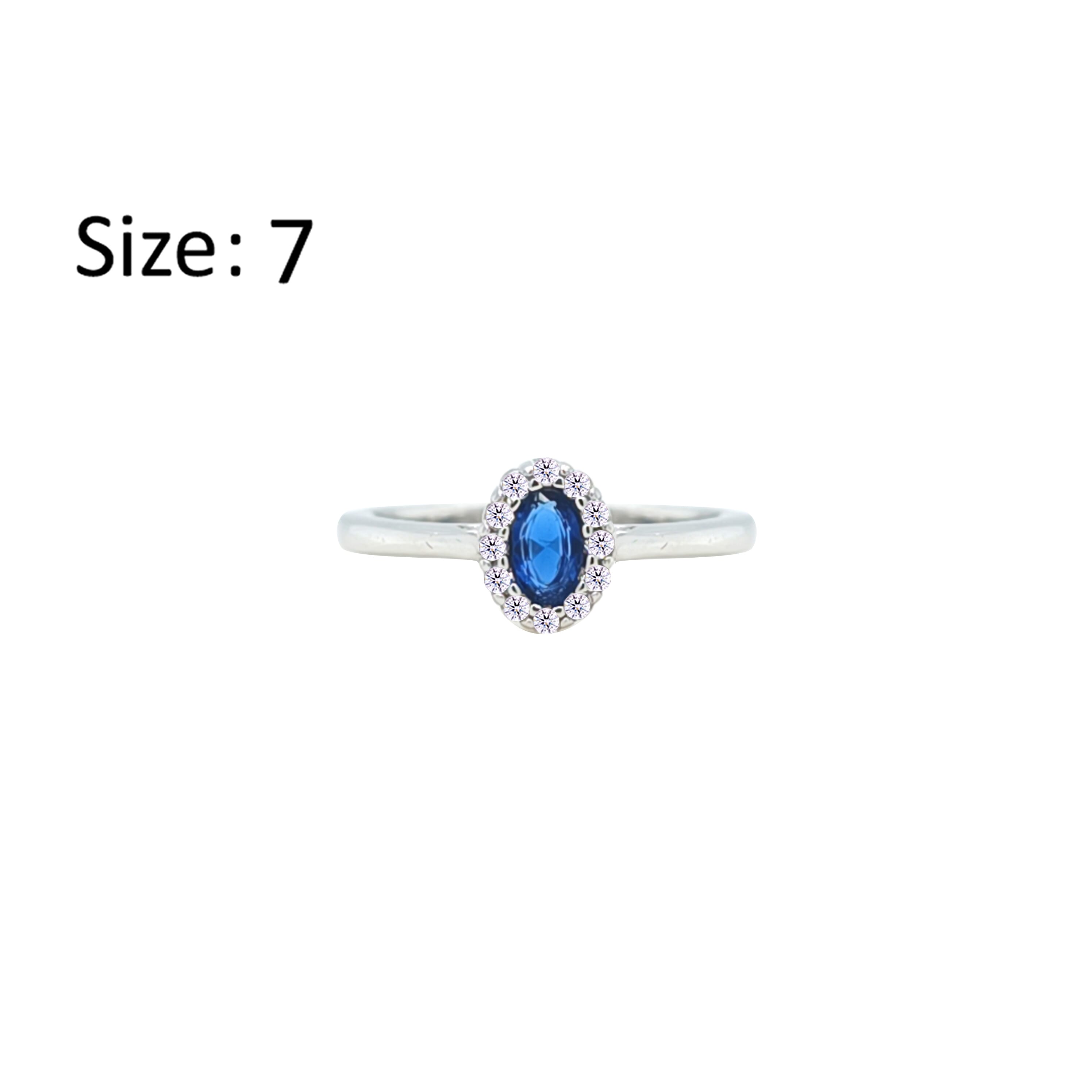 Asfour Crystal Halo Ring With Blue Oval Design In 925 Sterling Silver-RM0163-B-7