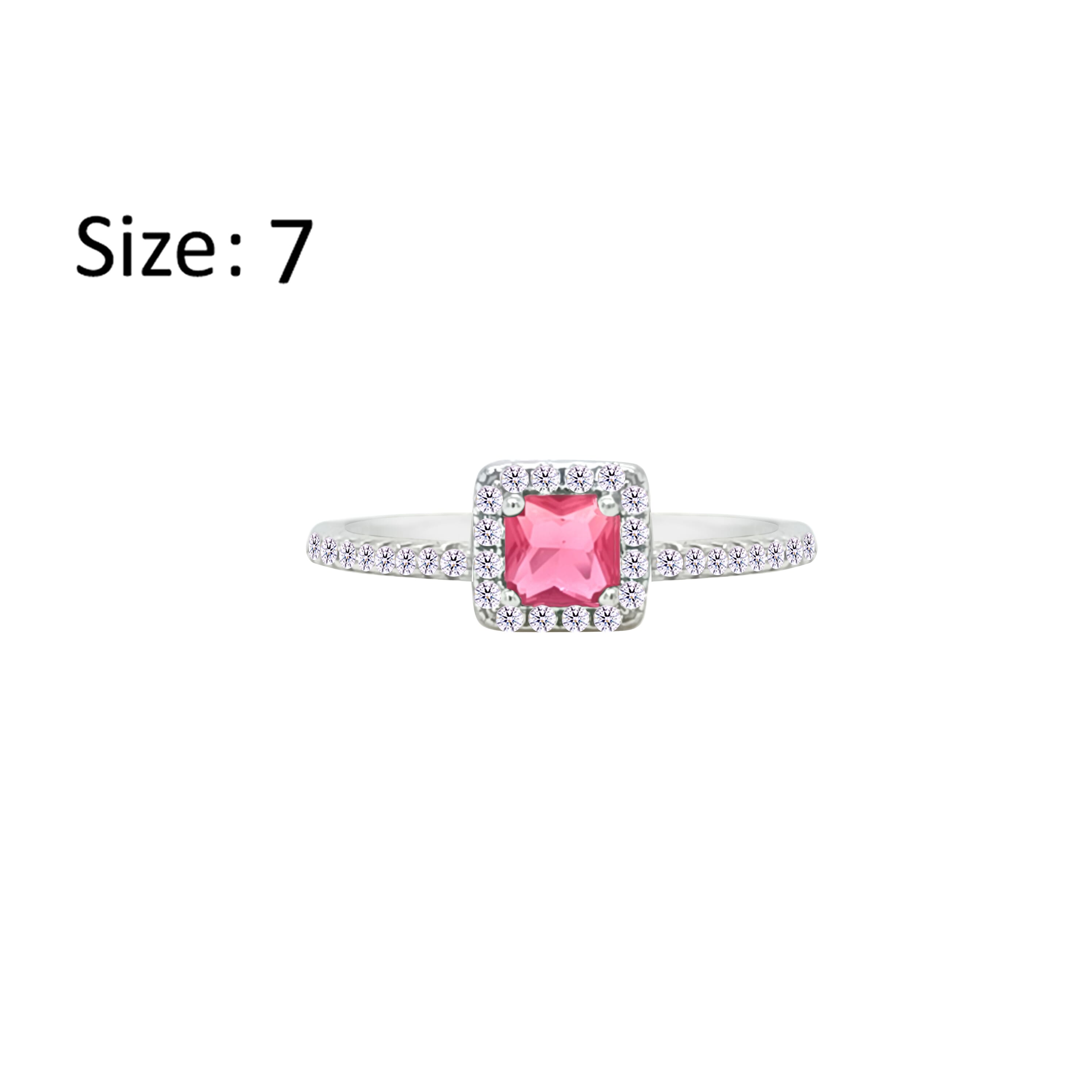 Asfour Crystal Halo Ring With Dark Rose Square Design In 925 Sterling Silver-RM0166-O5-7