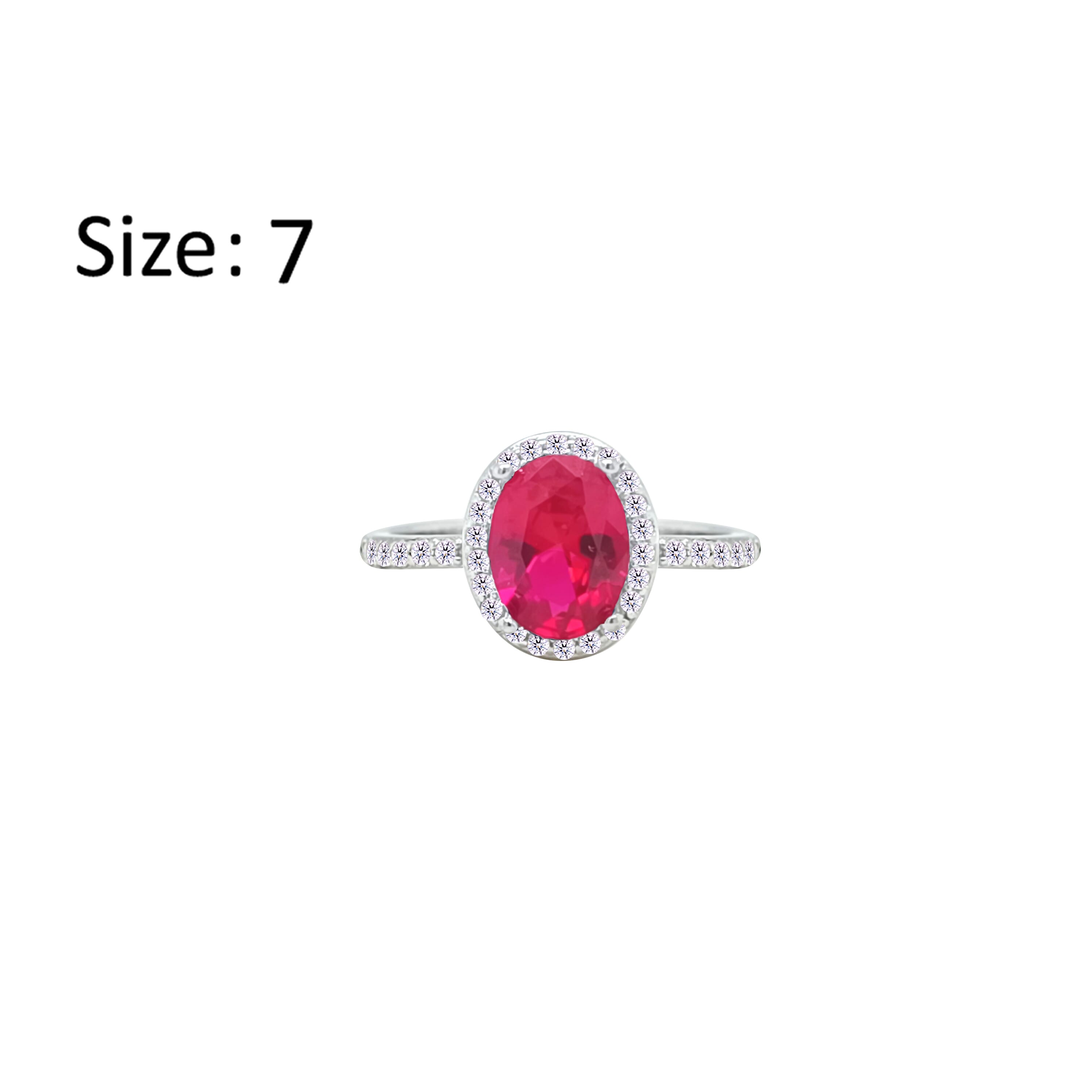 Asfour Crystal Halo Ring With Fuchsia Oval Design In 925 Sterling Silver-RM0161-F-7