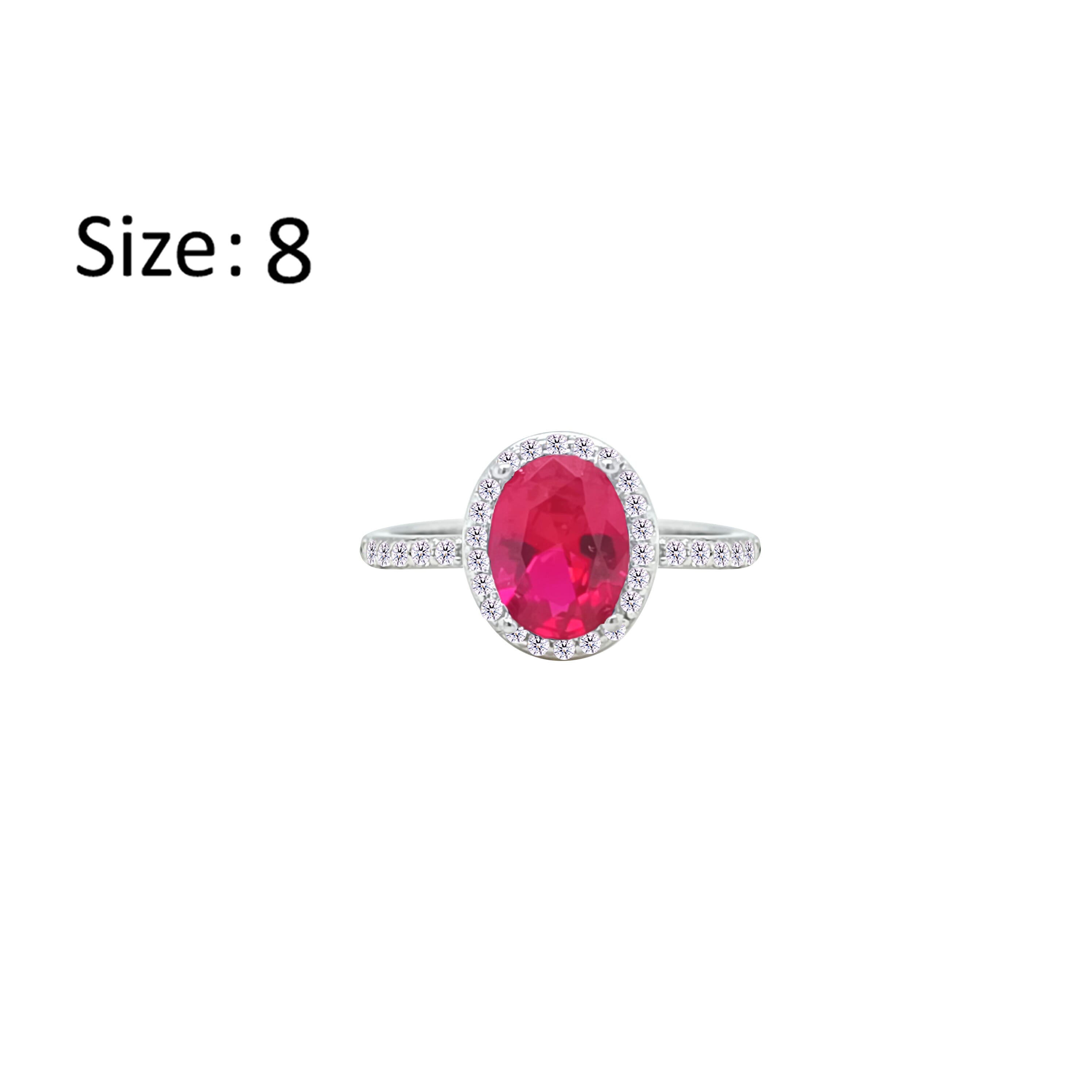 Asfour Crystal Halo Ring With Fuchsia Oval Design In 925 Sterling Silver-RM0161-F-8