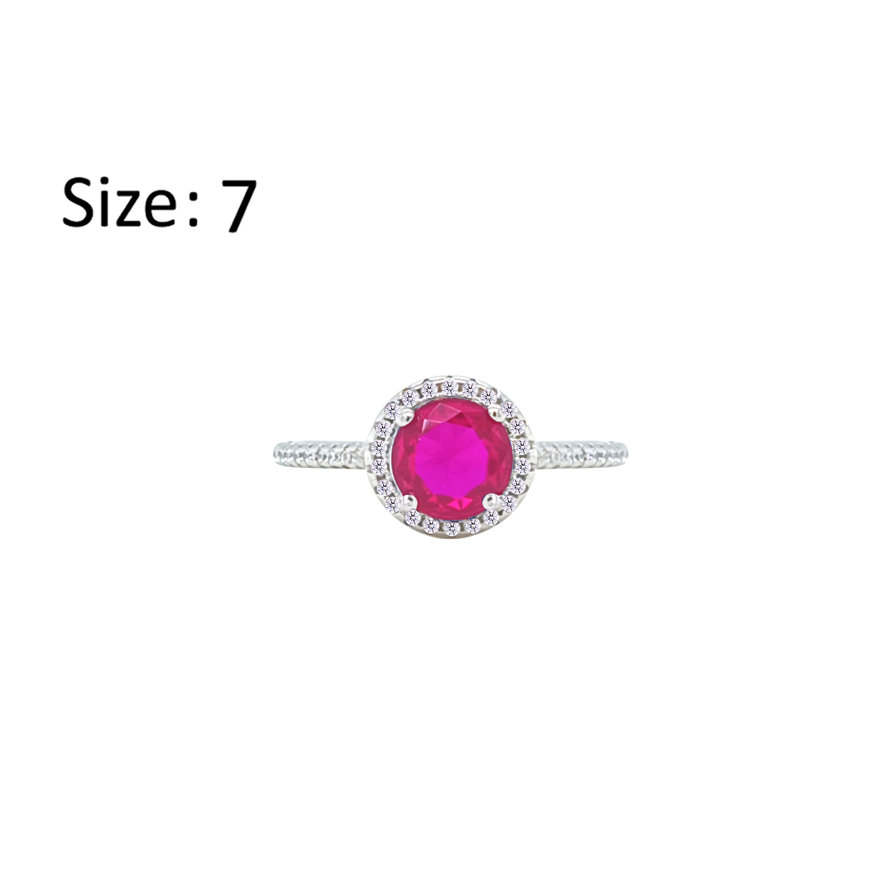 Asfour Crystal Halo Ring With Fuchsia Round Design In 925 Sterling Silver-RM0139-F-7