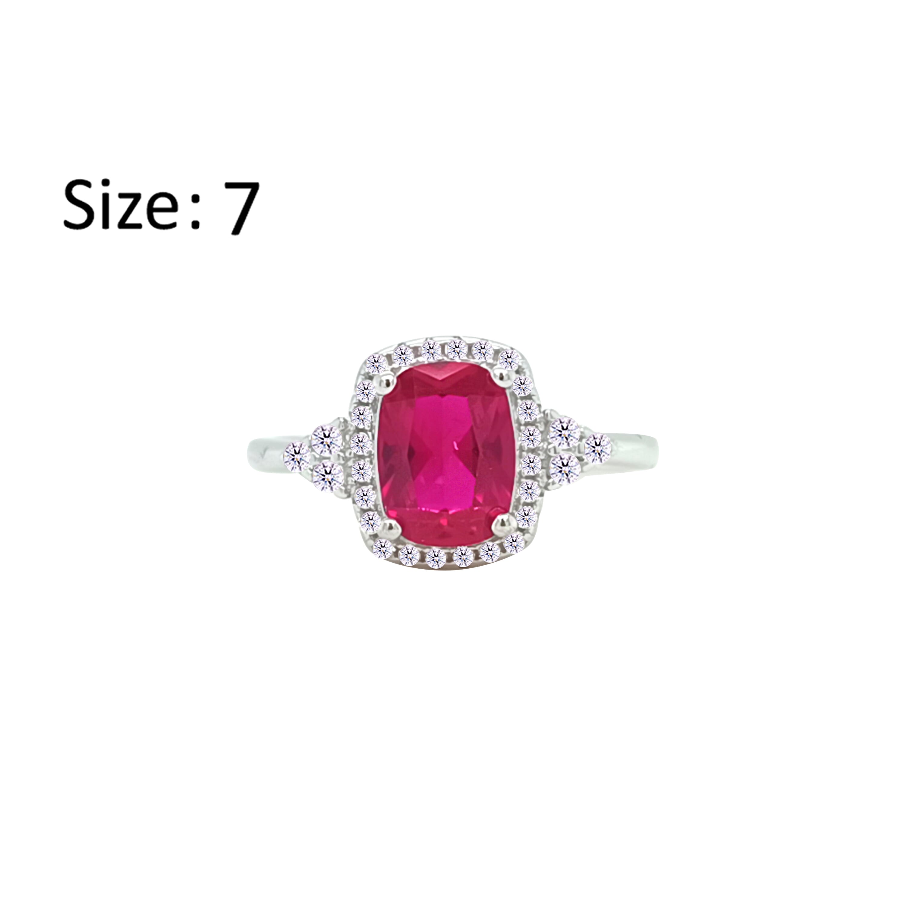 Asfour Crystal Halo Ring With Ruby Emerald Design In 925 Sterling Silver-RM0164-R-7