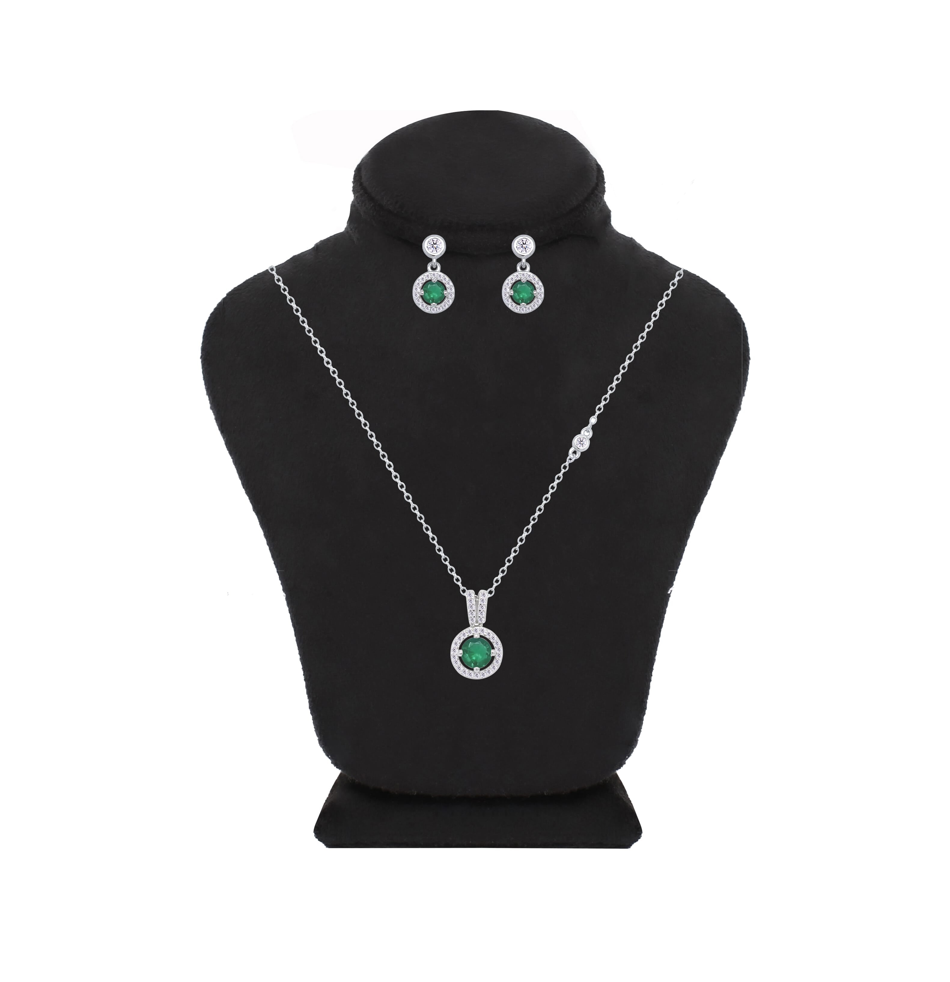 Asfour Crystal Jewelry Set Of Necklace & Earrings With Emerald Round Design In 925 Sterling Silver -SM0018-G