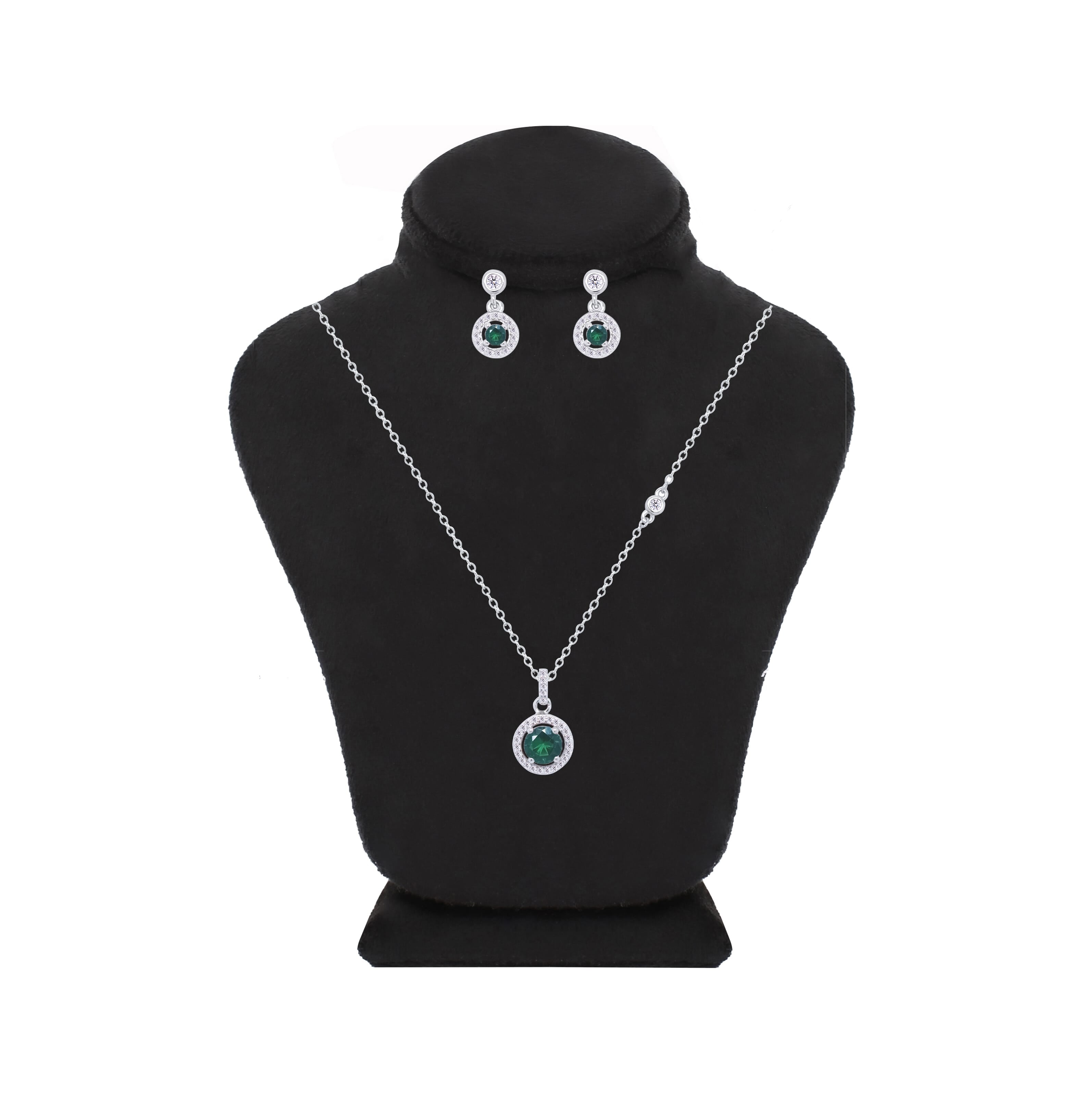Asfour Crystal Jewelry Set Of Necklace & Earrings With Emerald Round Design In 925 Sterling Silver -SM0019-G