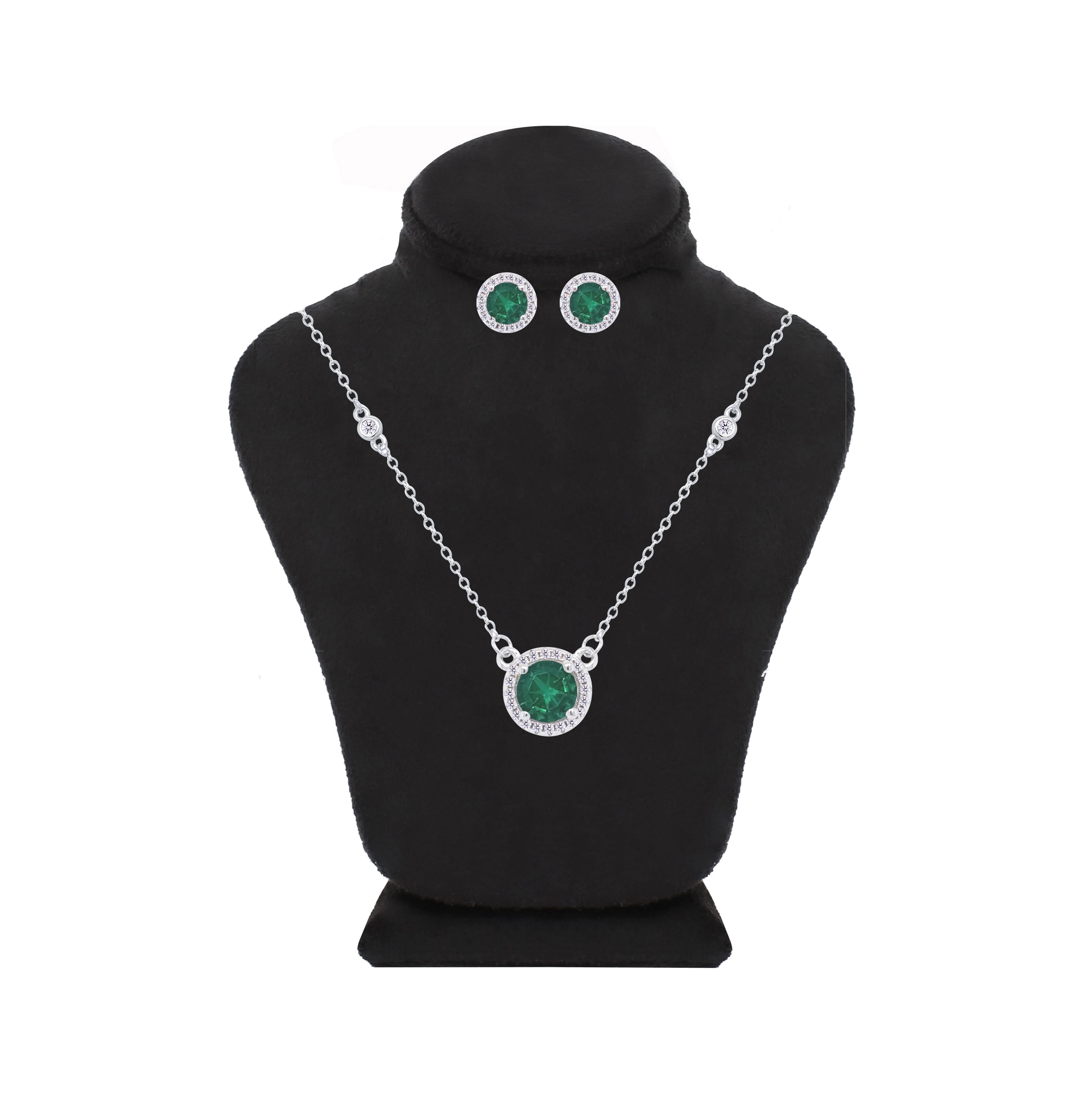 Asfour Crystal Jewelry Set Of Necklace & Earrings With Emerald Round Design In 925 Sterling Silver -SM0020-G