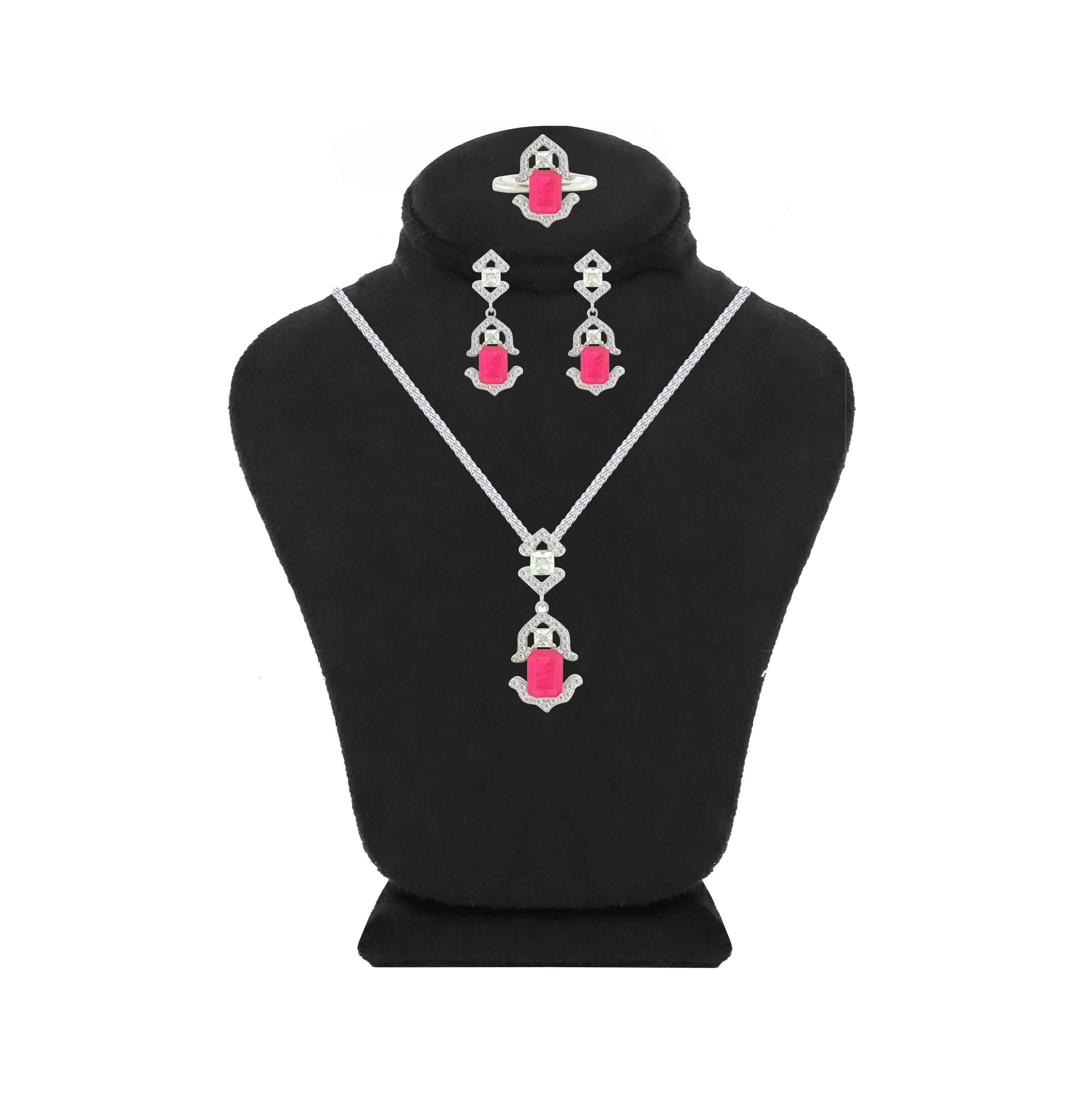 Asfour Crystal Jewelry Set With Art Deco Fuchsia Design In 925 Sterling Silver-SD0088-F-8