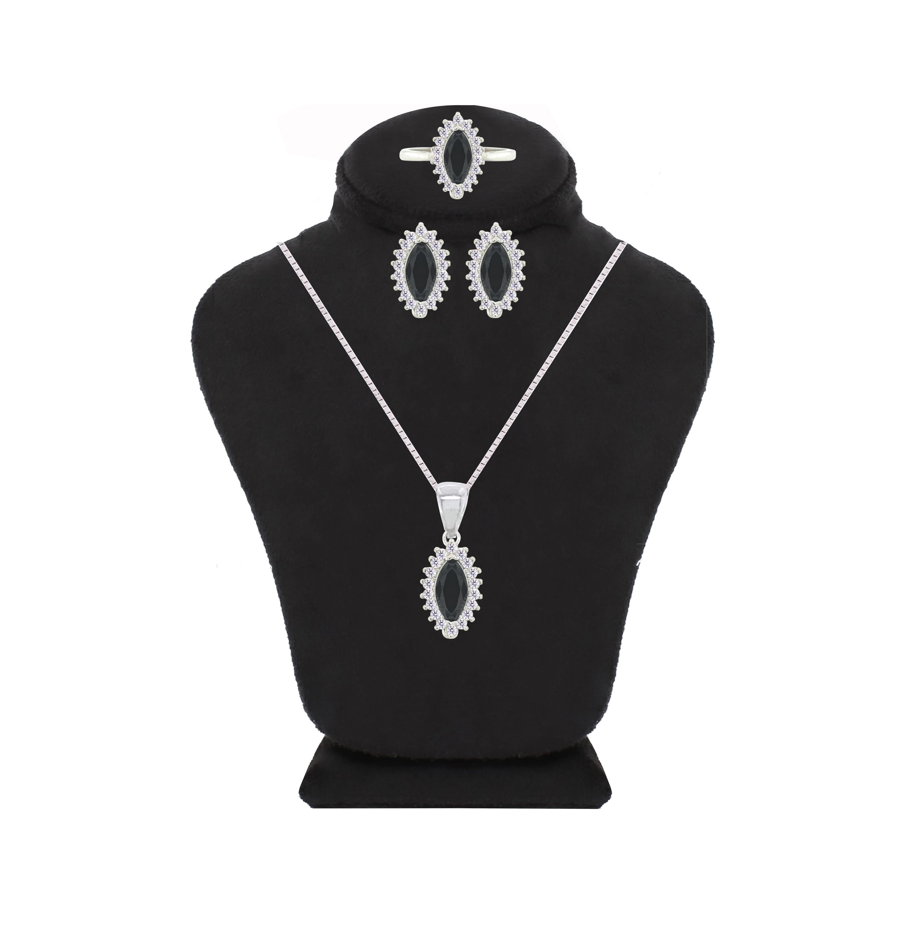 Asfour Crystal Jewelry Set With Black Marquise Design In 925 Sterling Silver-SD0064-P-7