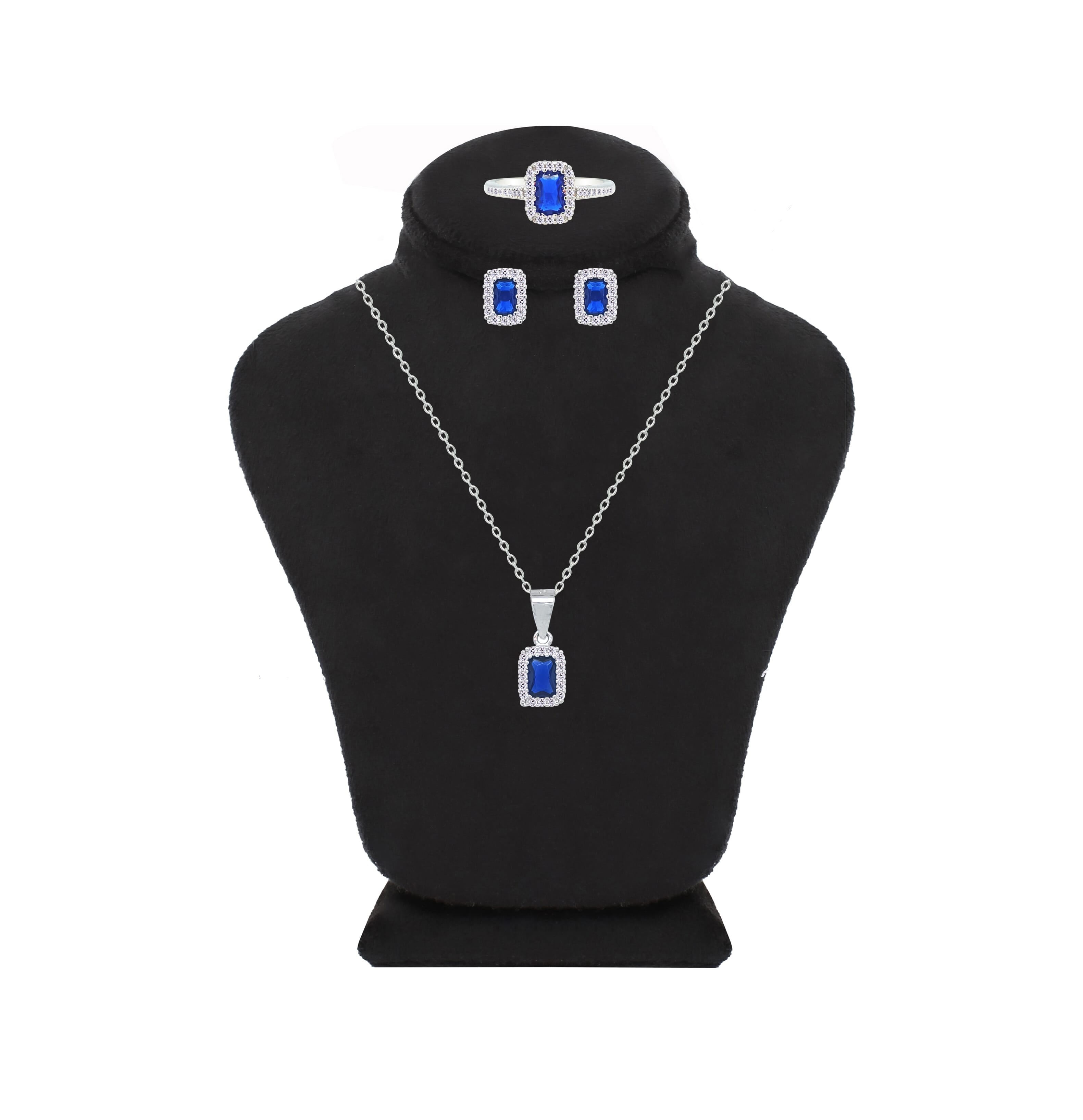 Asfour Crystal Jewelry Set With Blue Emerald Design Inlaid With Zircon In 925 Sterling Silver-SM0046-B-8