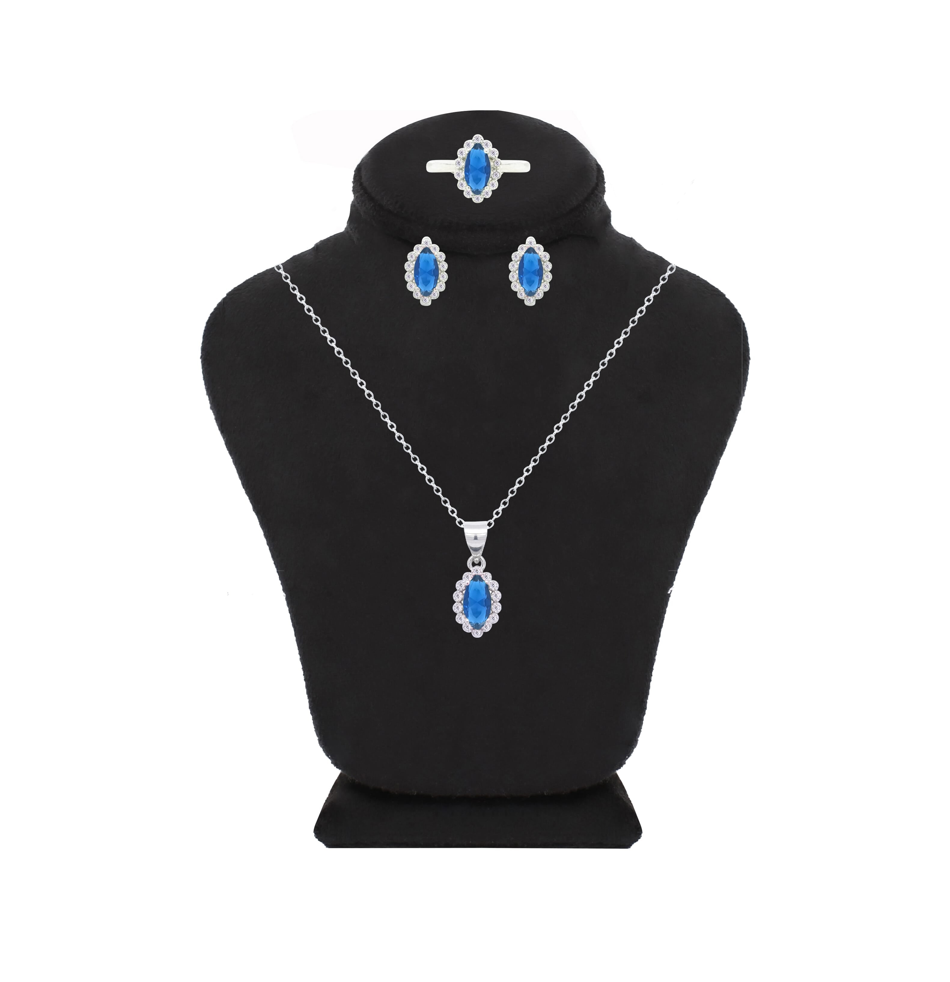 Asfour Crystal Jewelry Set With Blue Marquise Design In 925 Sterling Silver-SD0120-B-9