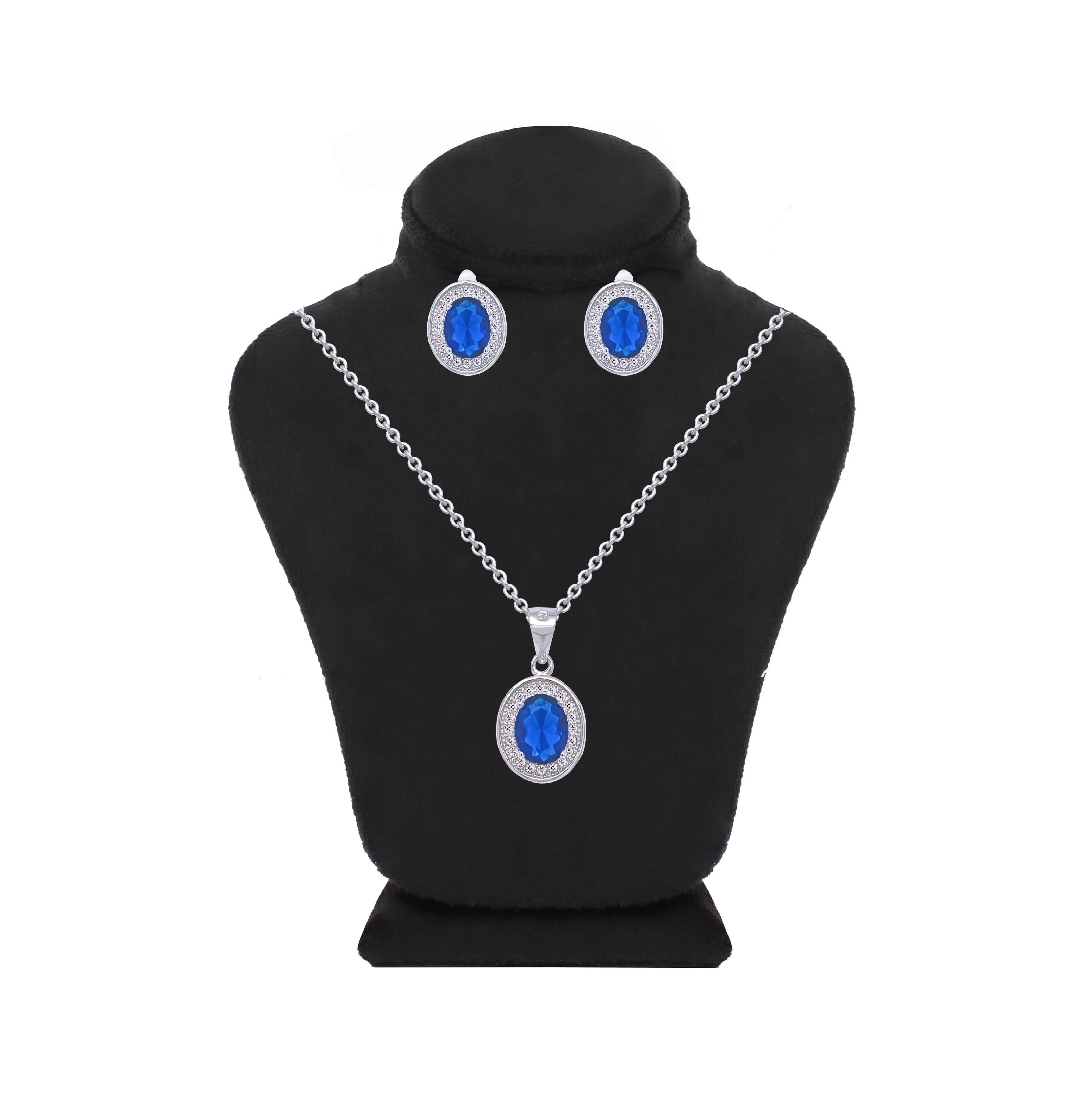 Asfour Crystal Jewelry Set With Blue Oval Design In 925 Sterling Silver -SM0032-B