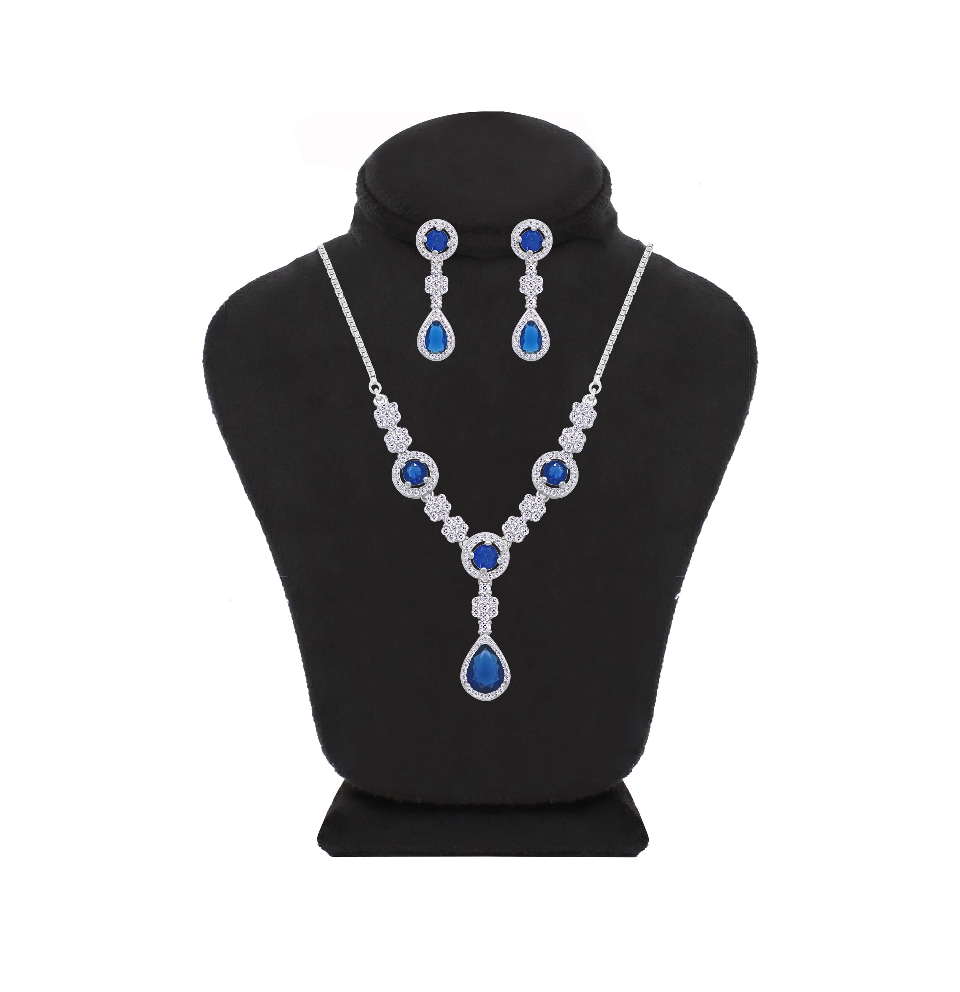 Asfour Crystal jewelry Set With Blue Round & Pear Design Inlaid With Zircon In 925 Sterling Silver-SM0038-WB