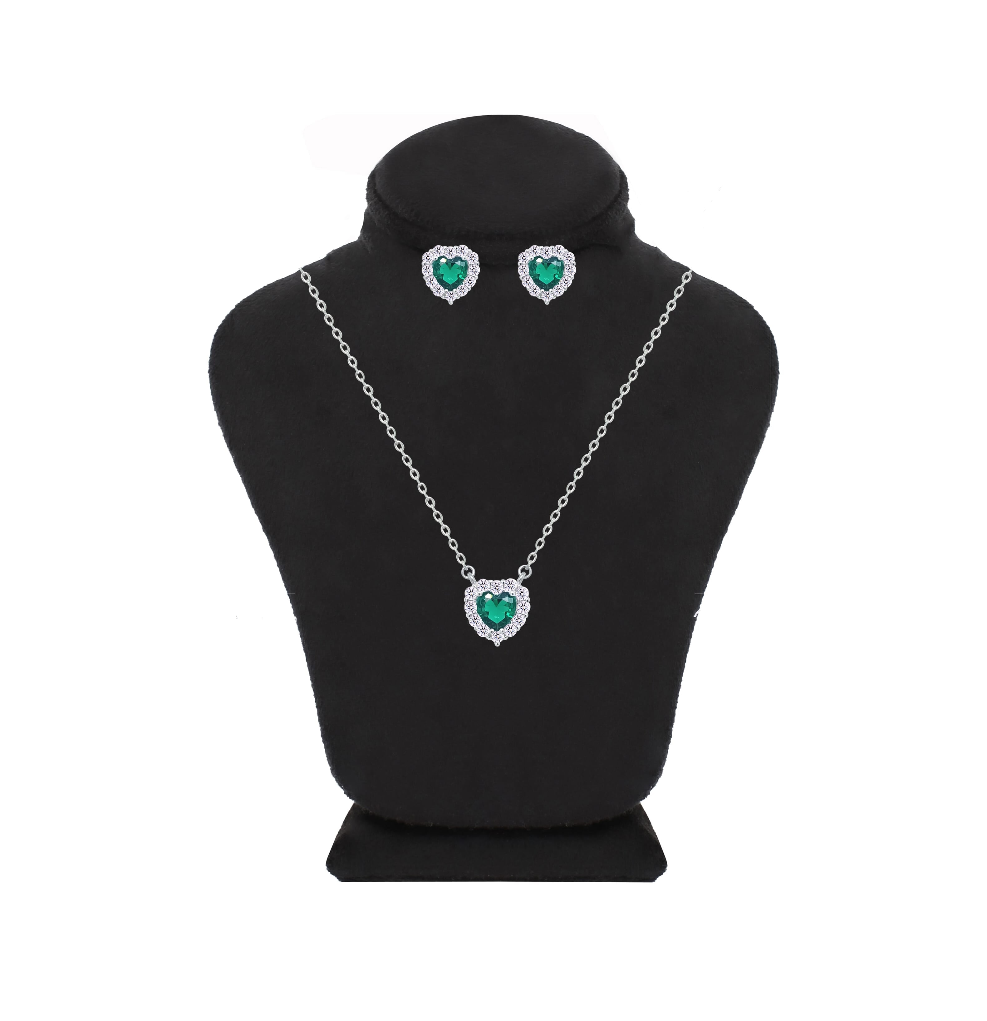 Asfour Crystal Jewelry Set With Emerald Heart Design Inlaid With Zircon In 925 Sterling Silver-SM0043-G