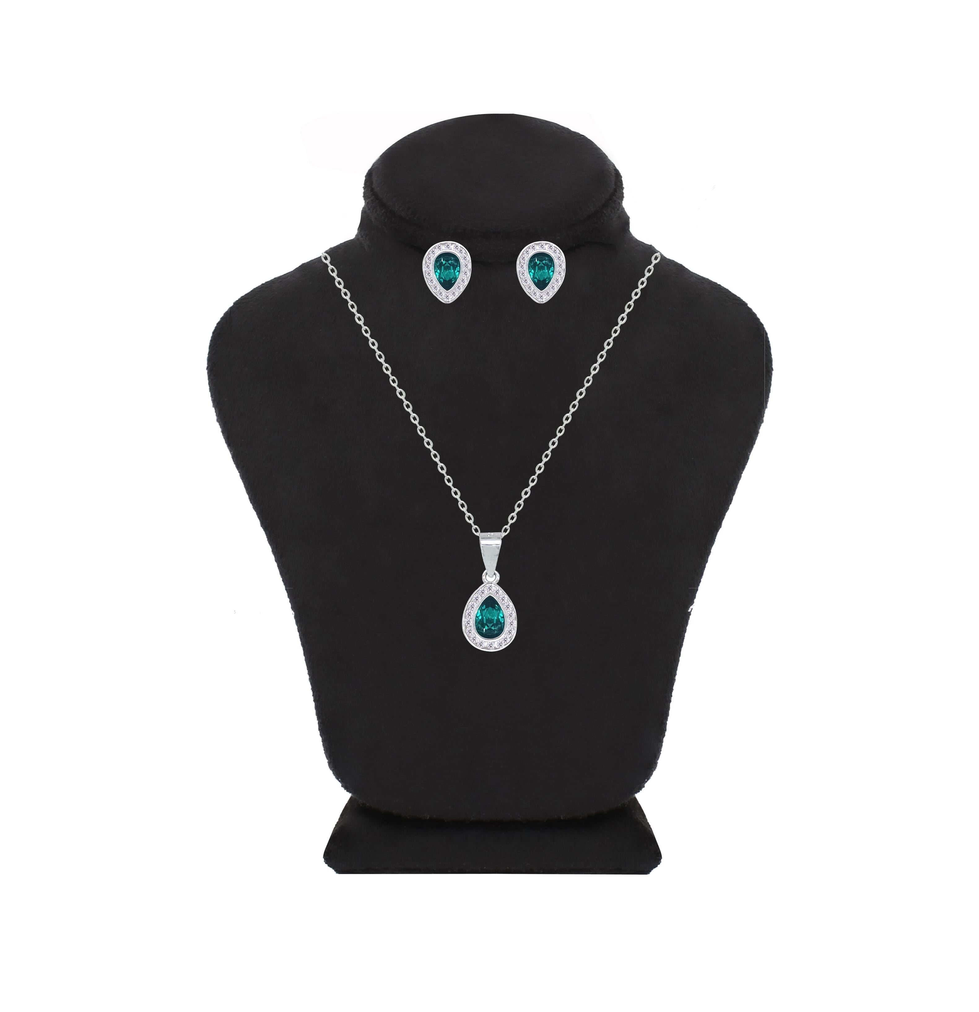Asfour Crystal Jewelry Set With Emerald Pear Design Inlaid With Zircon In 925 Sterling Silver-SM0044-Z