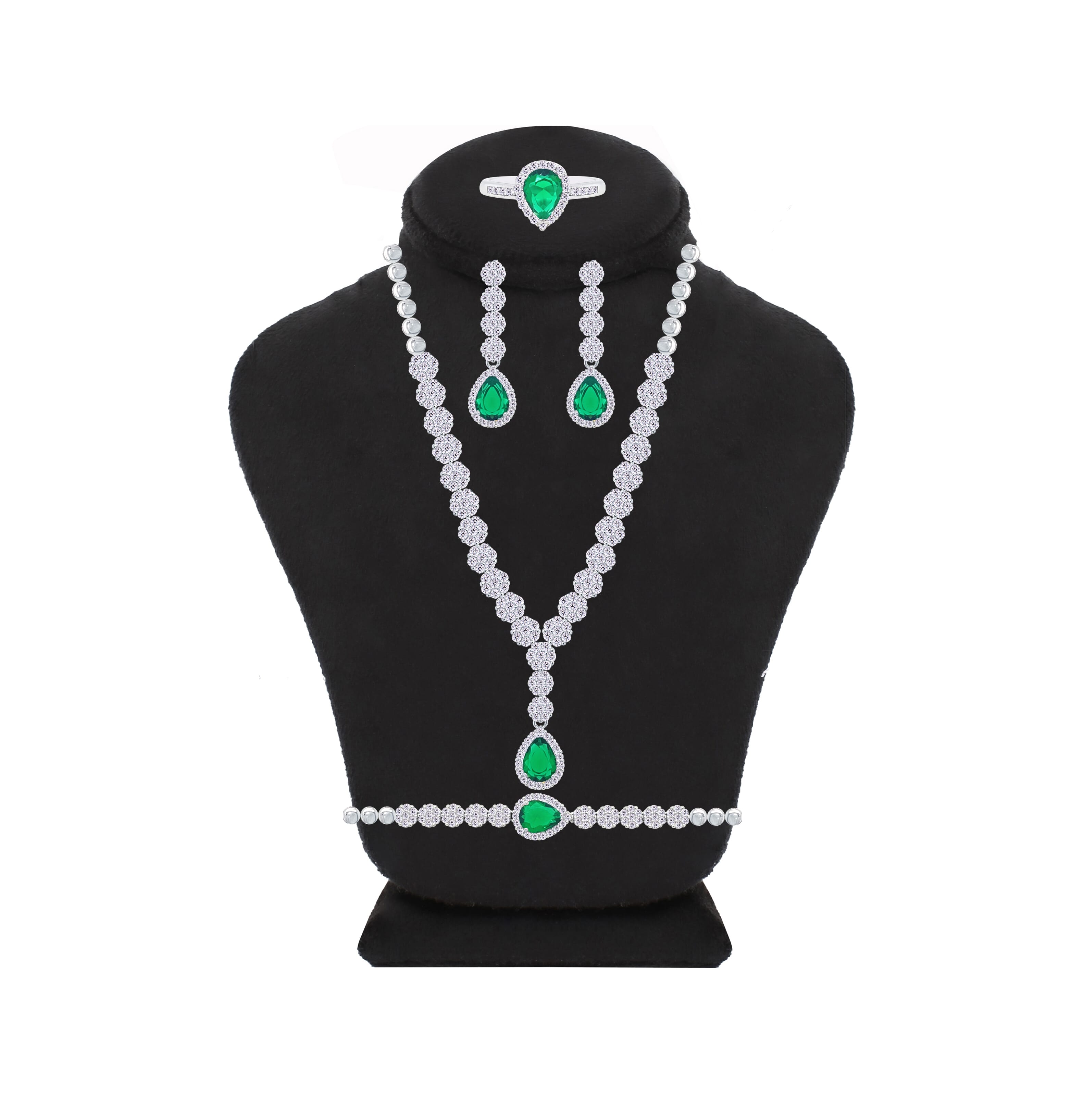 Asfour Crystal jewelry Set With Emerald Round & Pear Design Inlaid With Zircon In 925 Sterling Silver-SM0047-WG-7