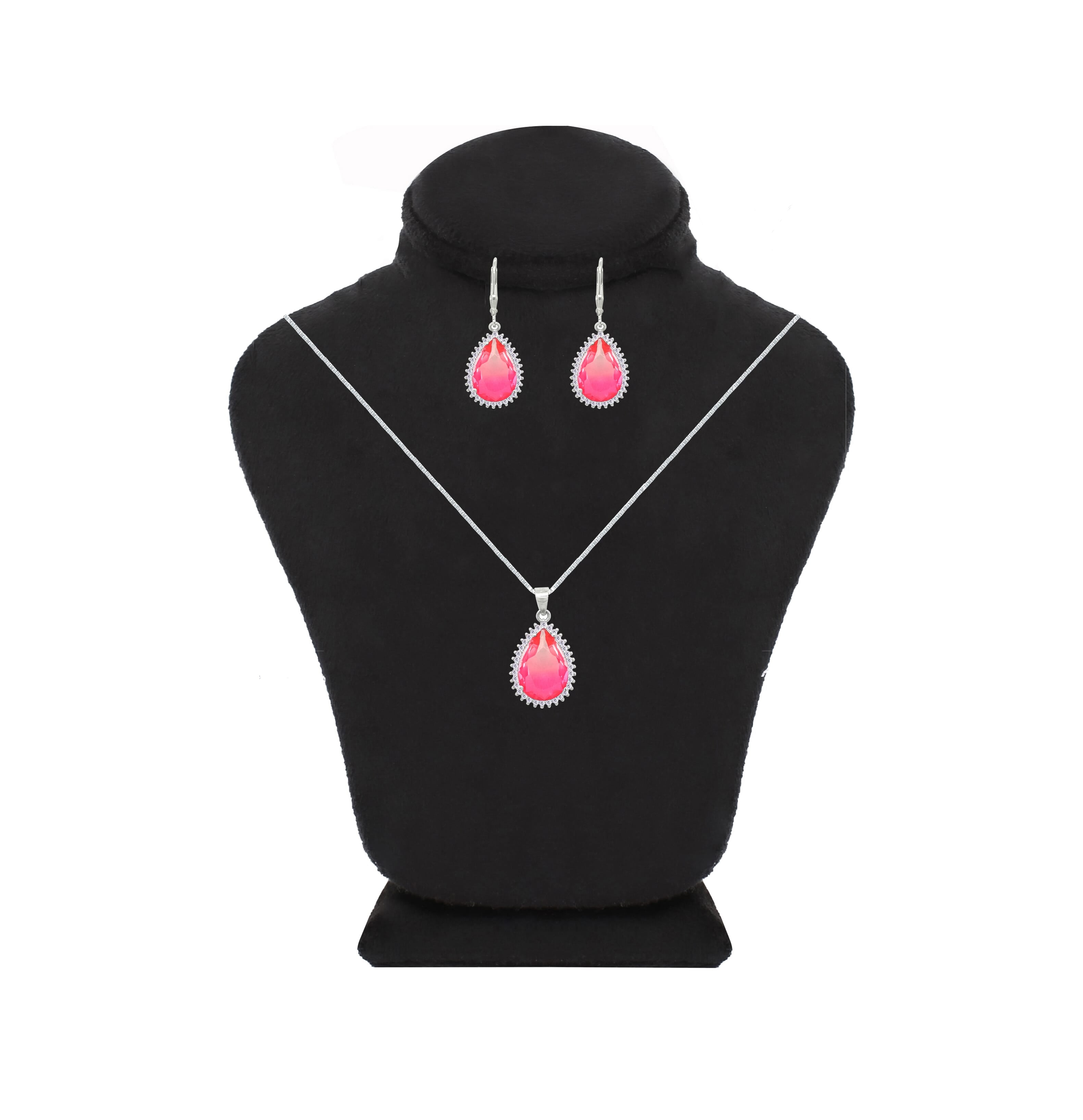 Asfour Crystal Jewelry Set With Fuchsia Pear Design In 925 Sterling Silver-SD0133-FXLF
