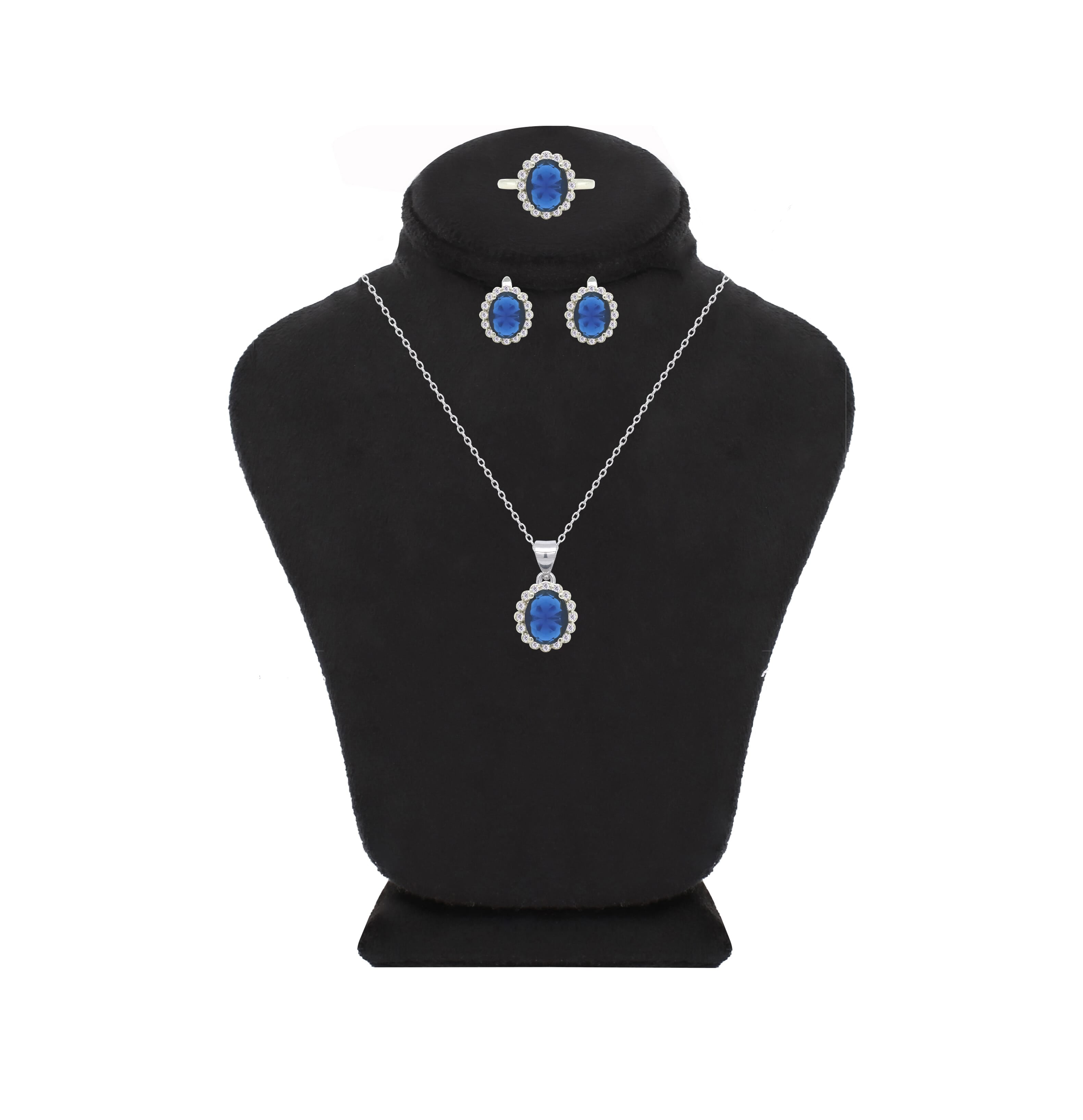 Asfour Crystal Jewelry Set With Halo Blue Oval Design In 925 Sterling Silver-SD0115-B-7