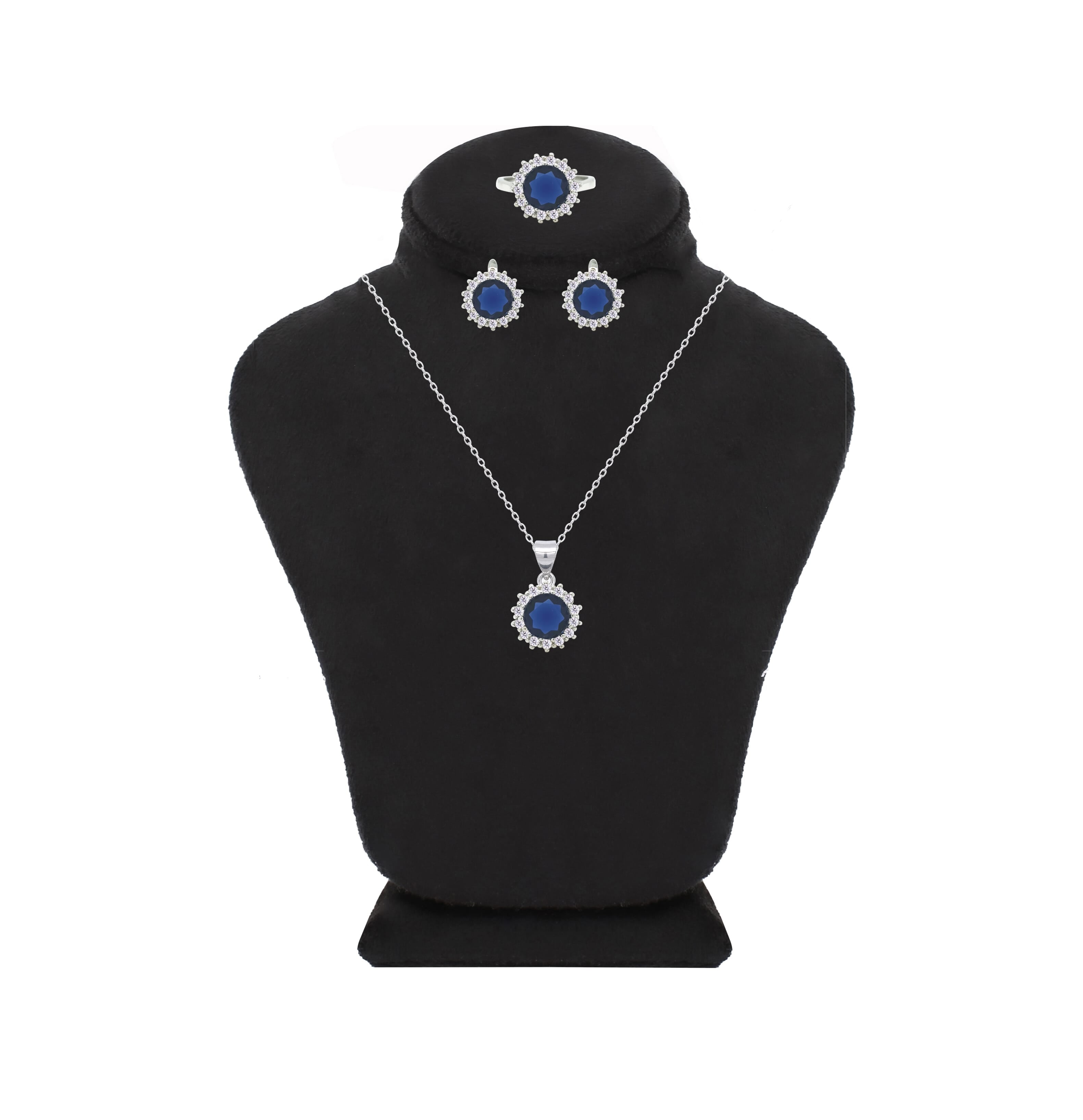 Asfour Crystal Jewelry Set With Halo Blue Round Design In 925 Sterling Silver-SD0113-B-8