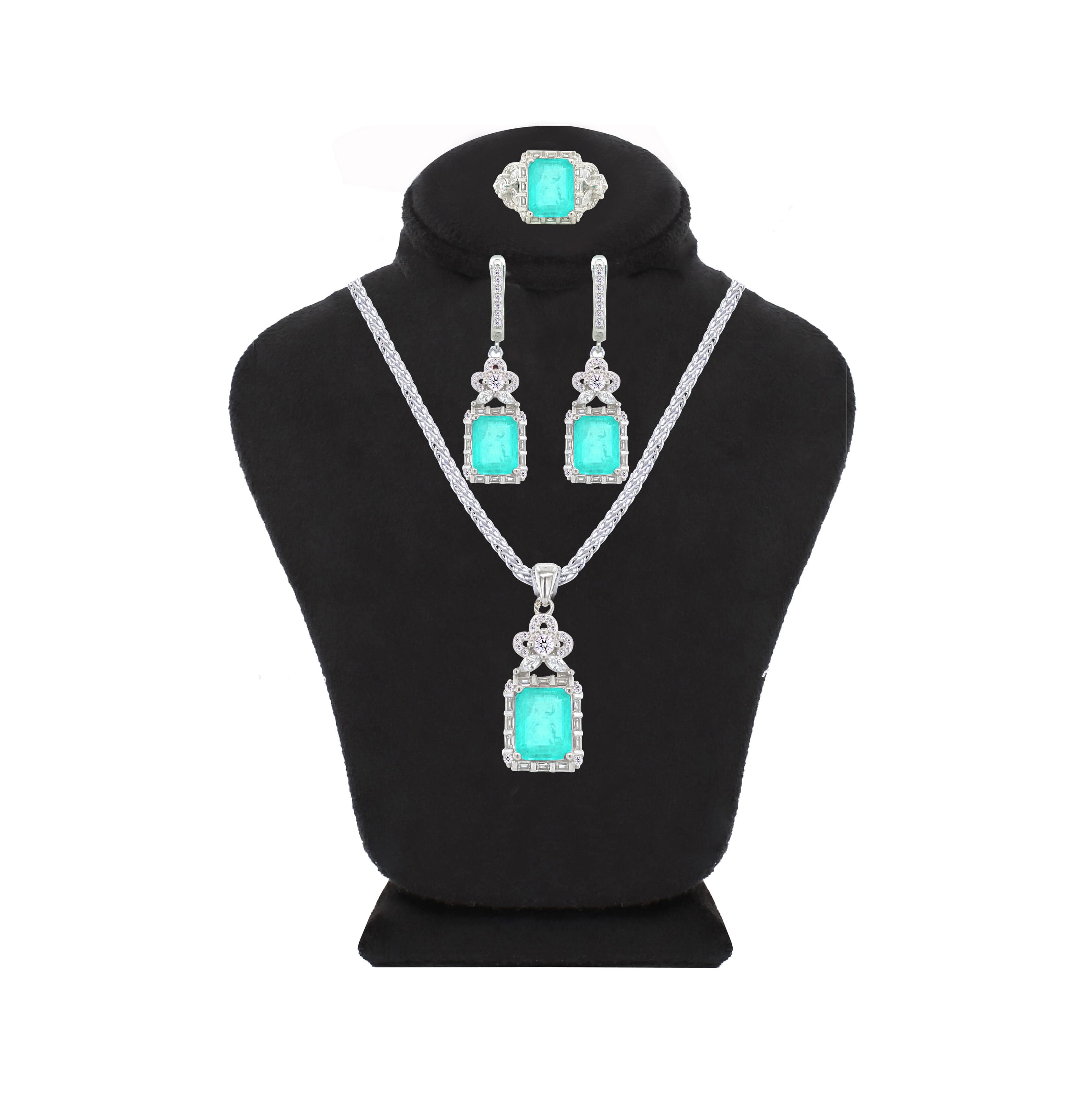 Asfour Crystal Jewelry Set With Light Turquoise Emerald Design In 925 Sterling Silver-SD0077-LGC-8