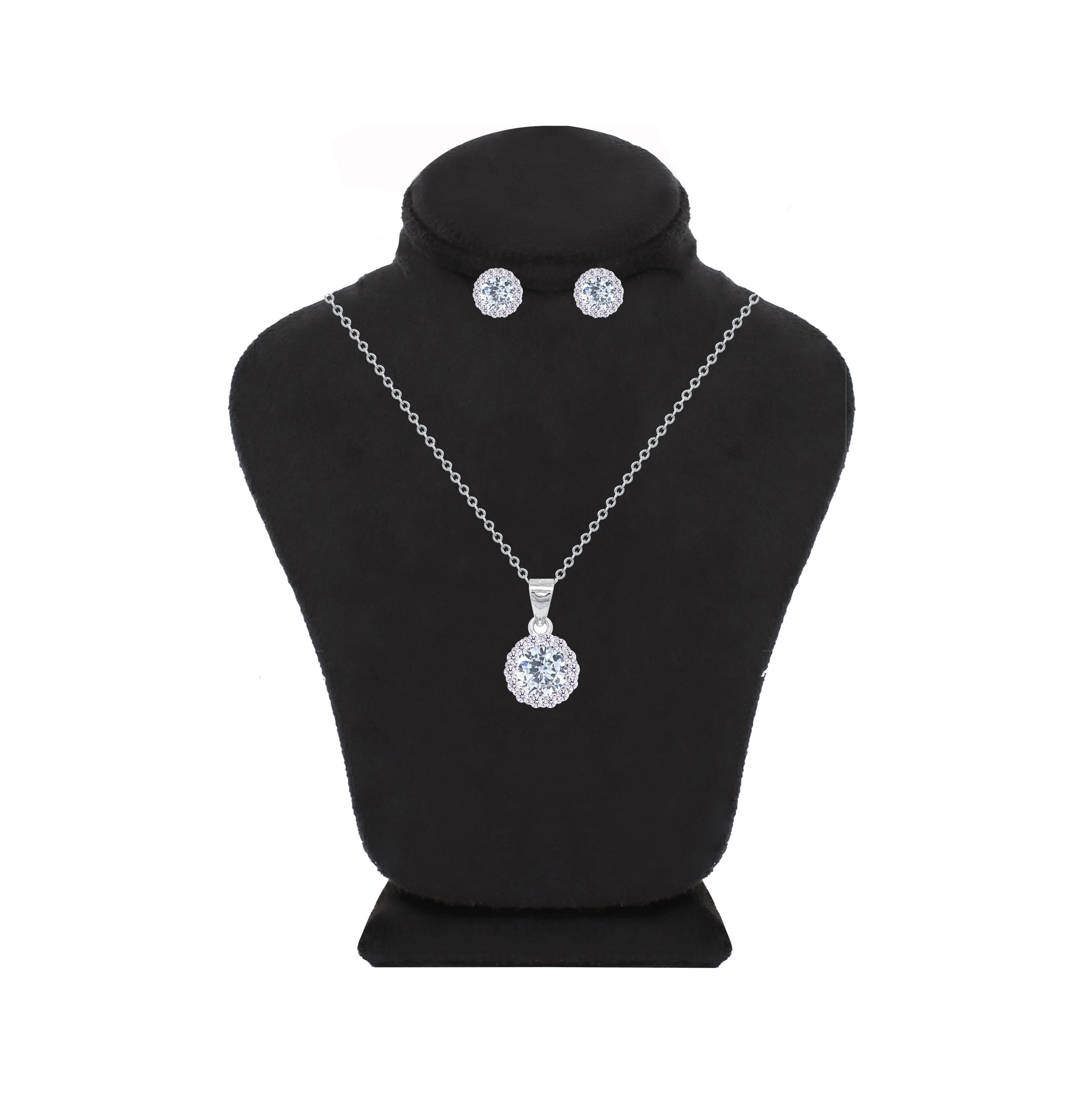 Asfour Crystal Jewelry Set With Round Design Inlaid With Zircon In 925 Sterling Silver-SM0042