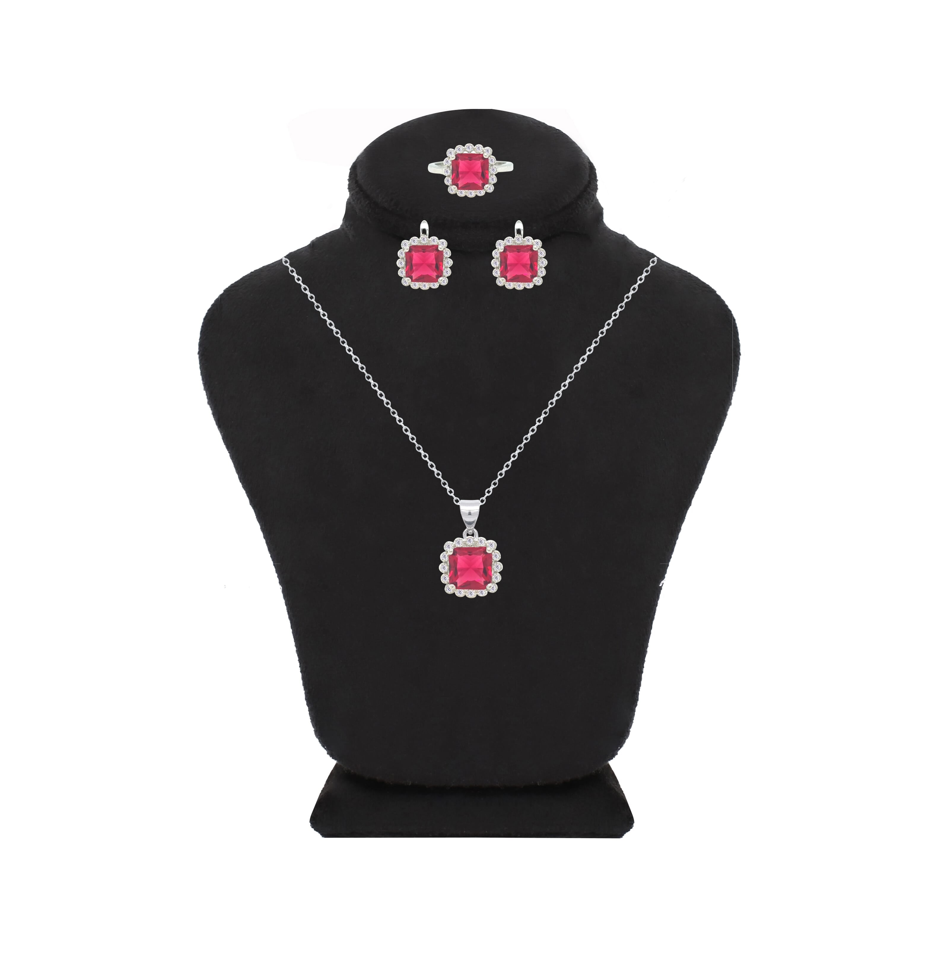 Asfour Crystal Jewelry Set With Ruby Square Design In 925 Sterling Silver-SD0108-R-7