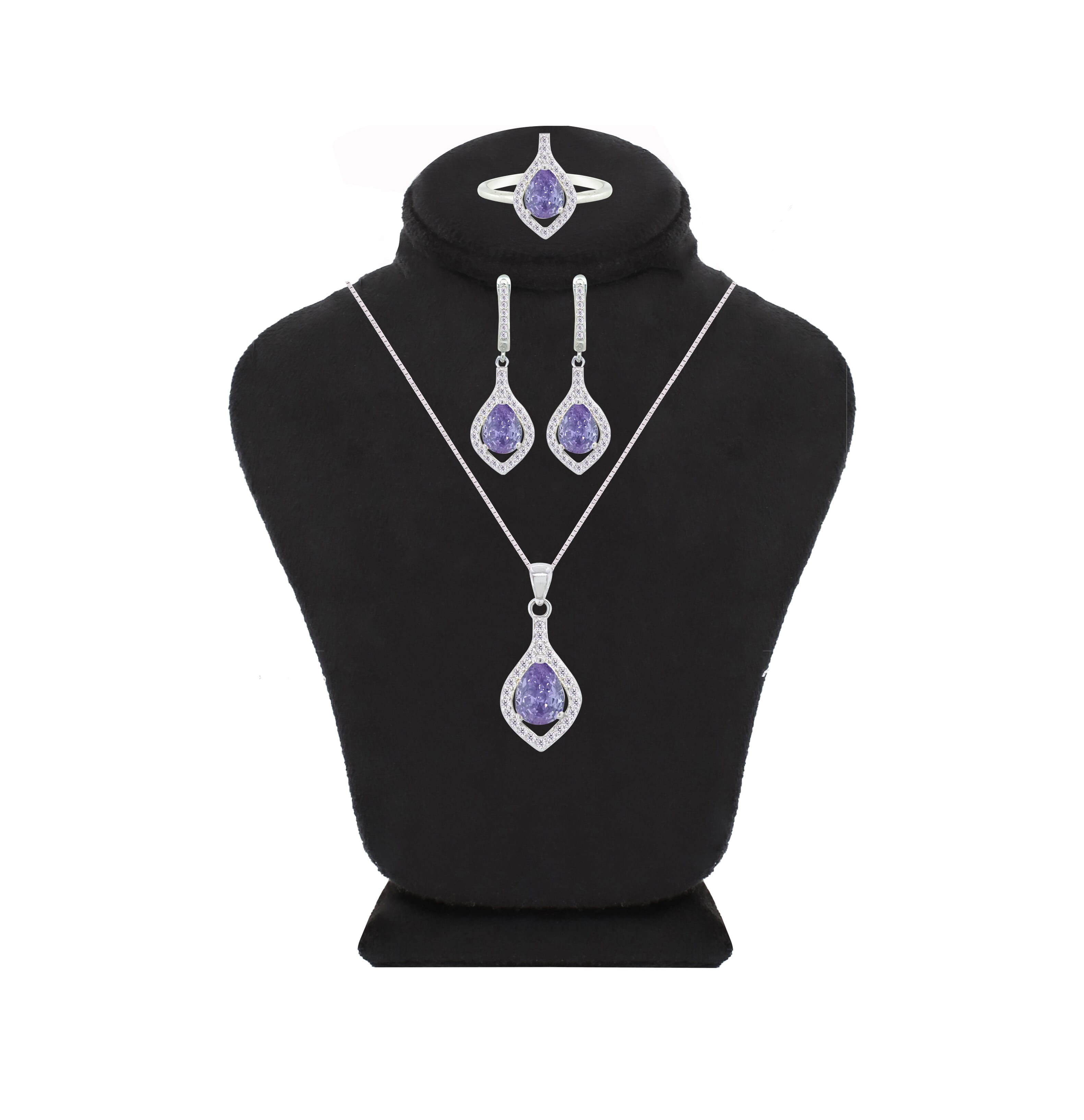 Asfour Crystal Jewelry Set With Tenzanite Pear Design In 925 Sterling Silver-SD0068-N-8