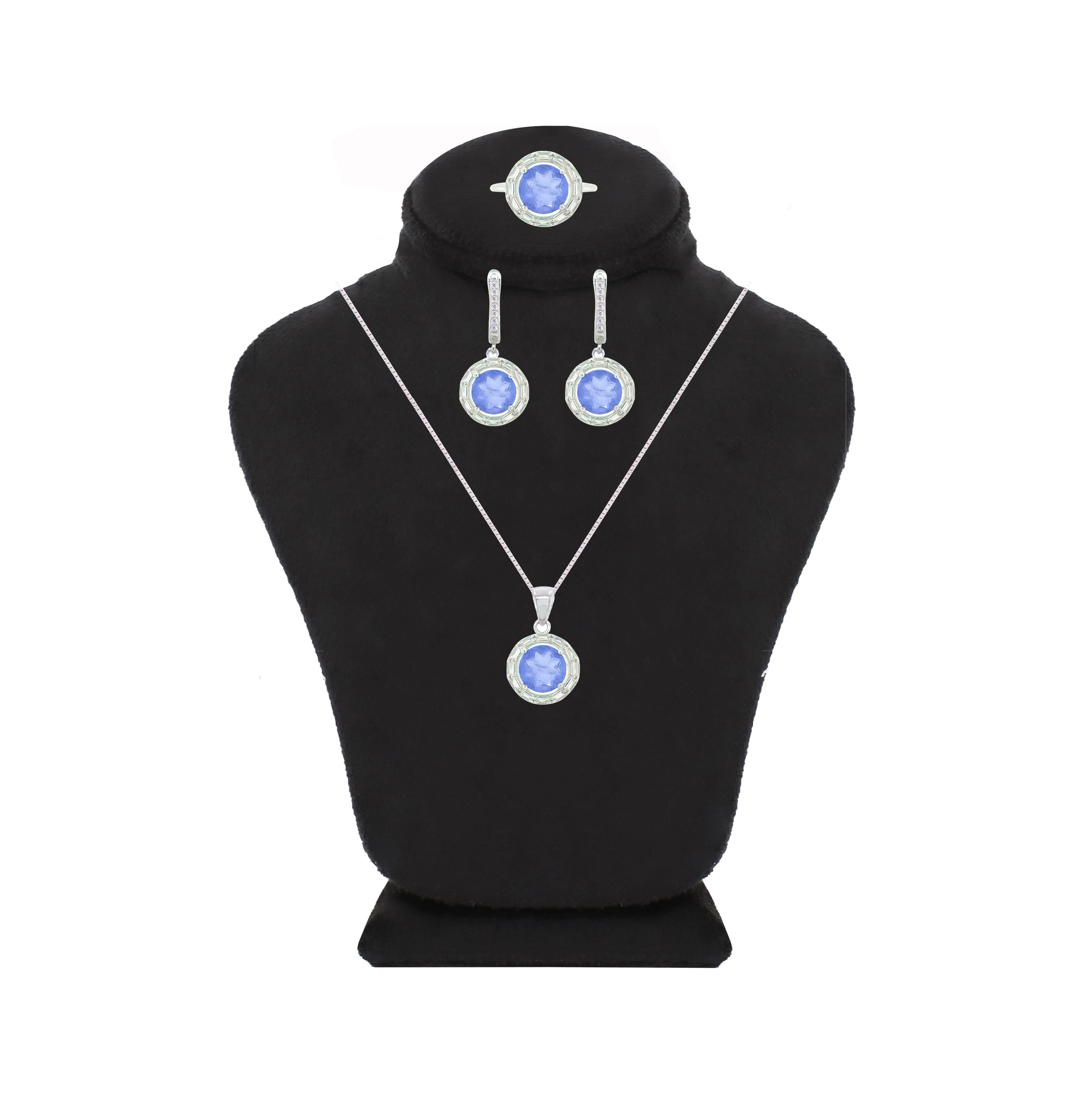 Asfour Crystal Jewelry Set With Tenzanite Round Design In 925 Sterling Silver-SD0062-N-8
