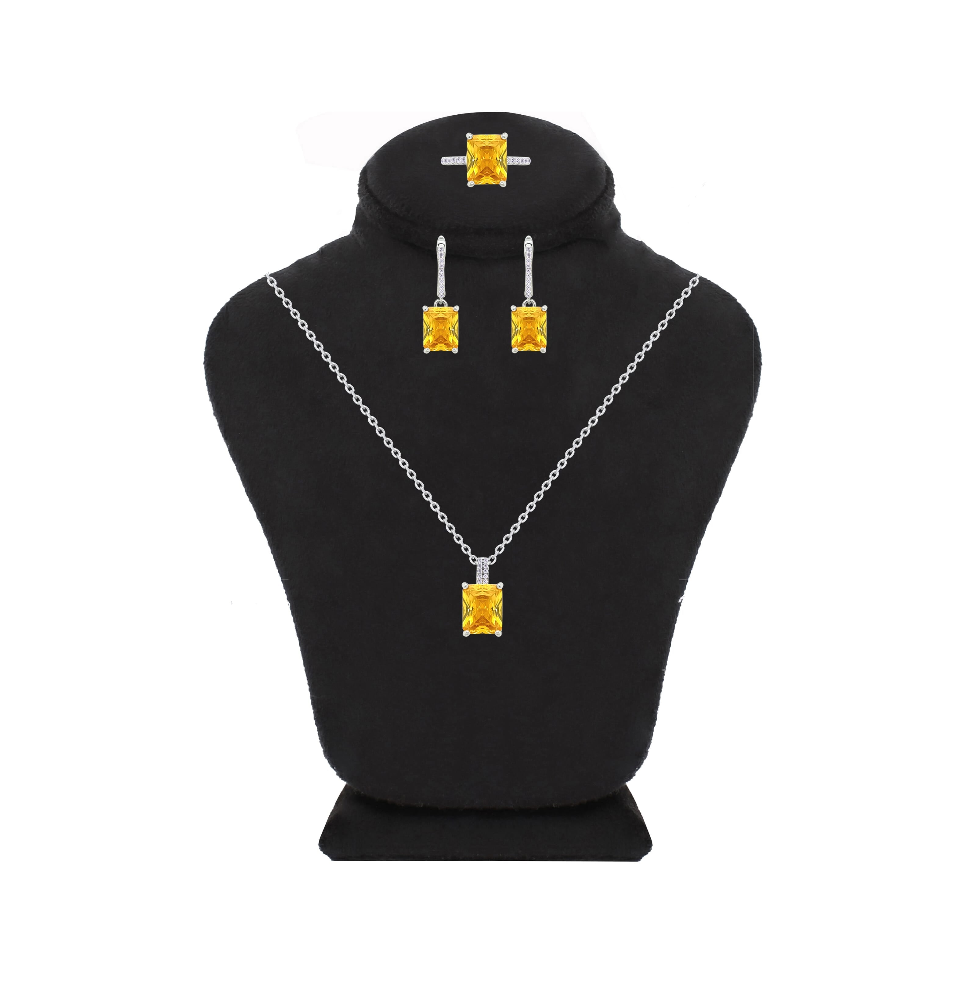 Asfour Crystal Jewelry Set With Yellow Emerald Design In 925 Sterling Silver-SD0135-Y-7