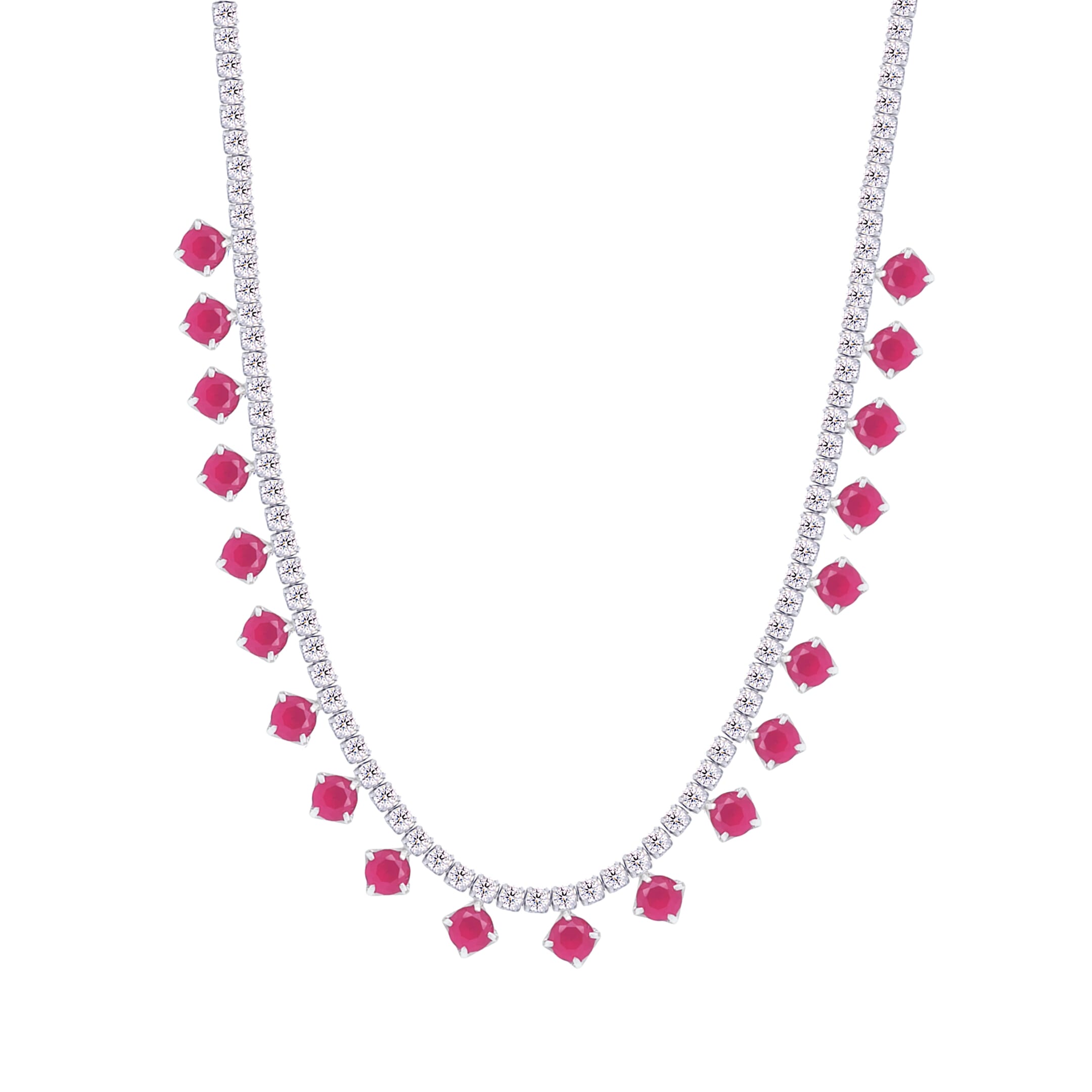 Asfour Crystal Tennis Charm Necklace With Ruby Round Zircon Stones In 925 Sterling Silver-ND0423-WR