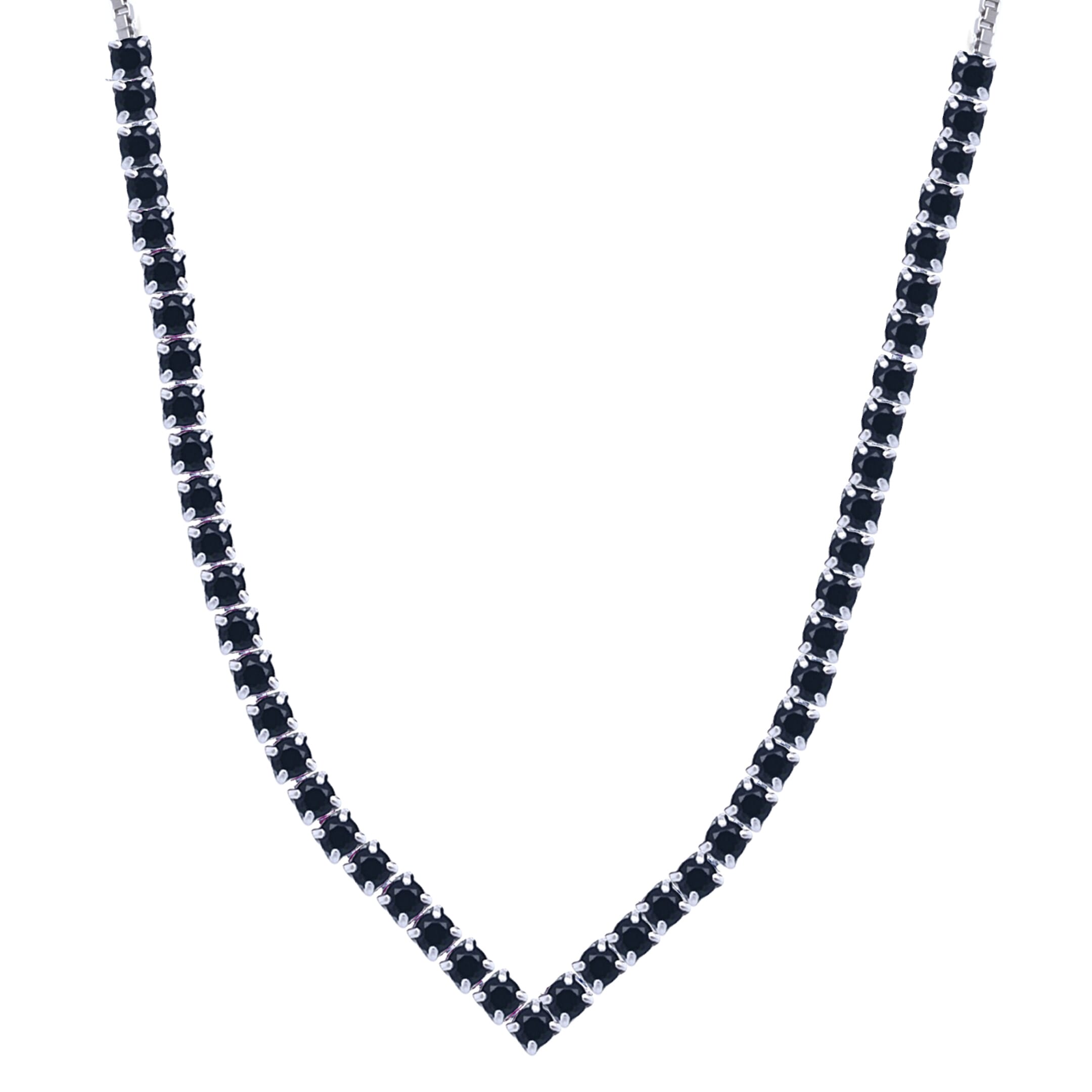 Asfour Crystal Tennis Necklace With Black Round Zircon Stones In 925 Sterling Silver-ND0398-P