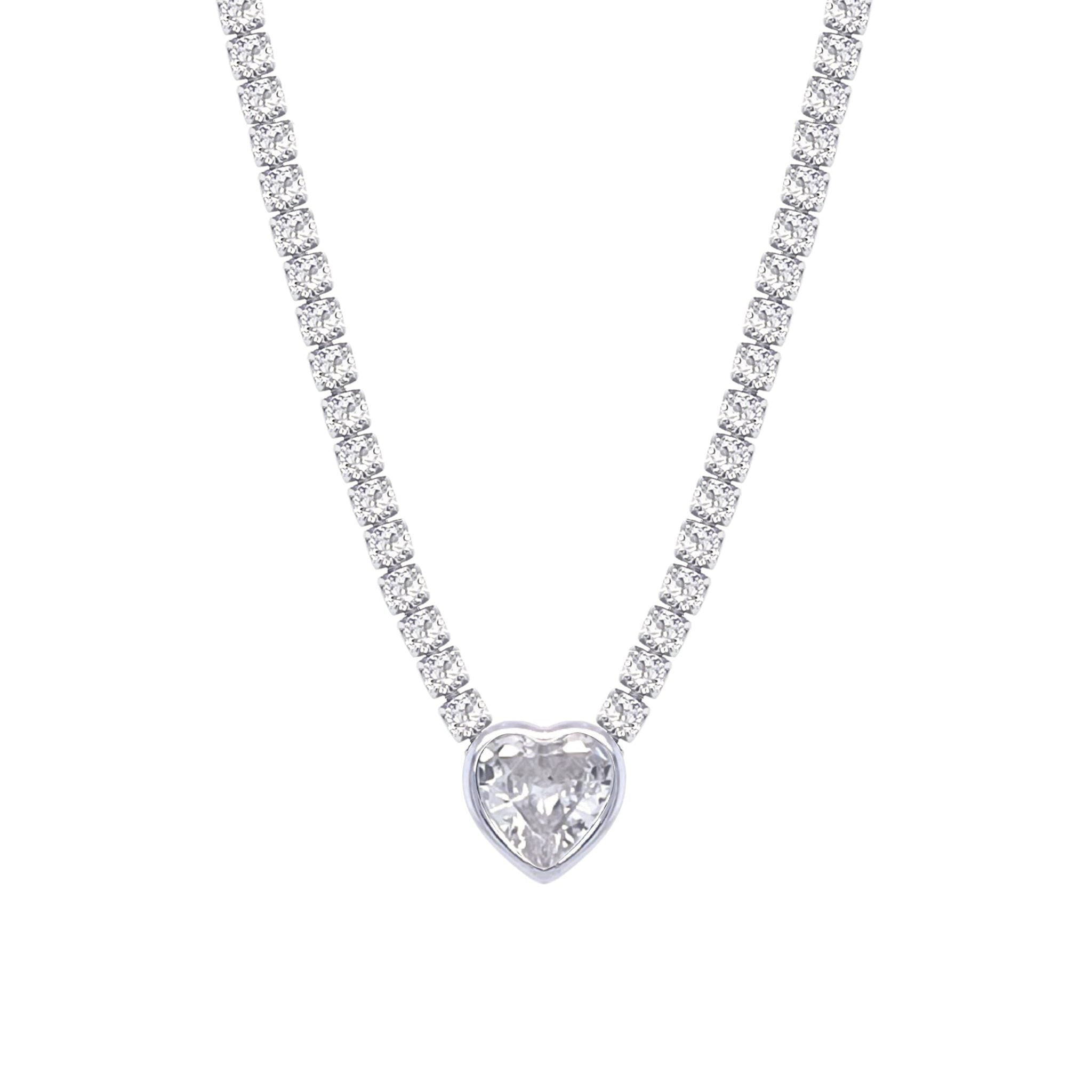 Asfour Crystal Tennis Necklace With Heart Design In 925 Sterling Silver-ND0343
