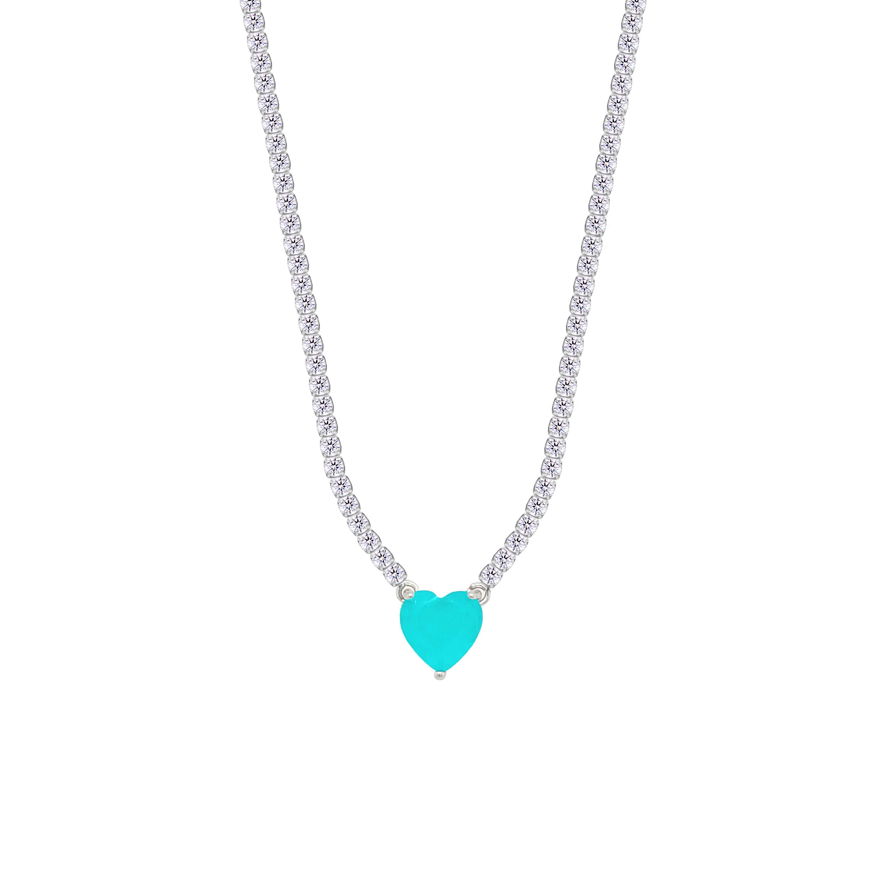 Asfour Crystal Tennis Necklace With Turquoise Heart Stone In 925 Sterling Silver-NM0075-WGC